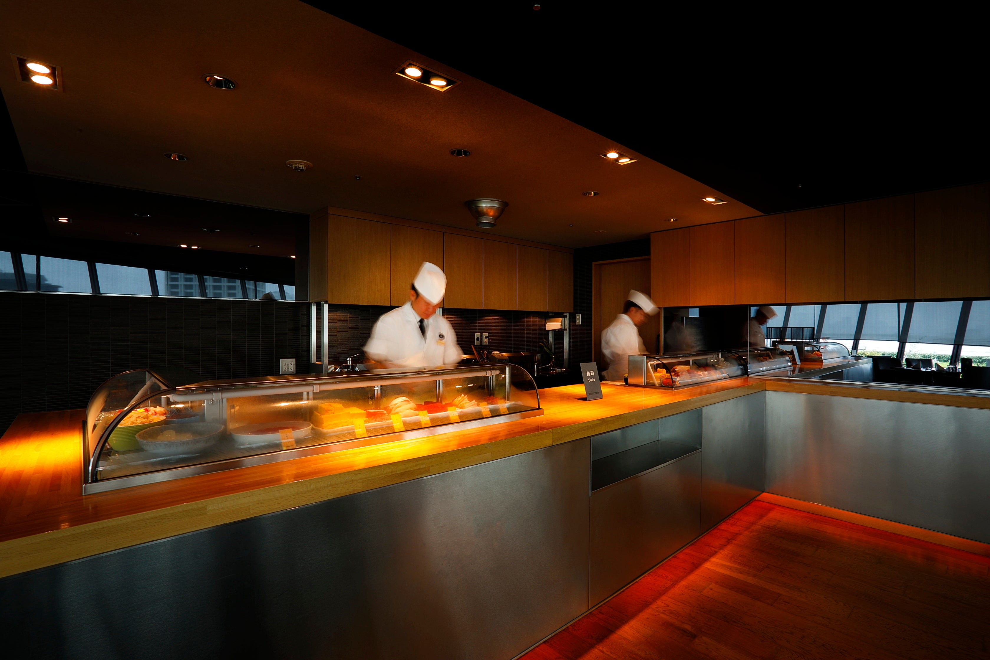 ステージキッチンから供される、和・洋・中&スイーツの多彩な料理の数々と、都内を一望できる360°パノラマの眺望が魅力の「VIEW & DINING THE SKY」。なかでも職人が握る寿司、目の前で焼き上げる鉄板焼、季節の魚や旬の野菜を使用した天ぷら、更には、ホテルニューオータニのシグネチャー「スーパースイーツシリーズ」やピエール・エルメ・パリのスイーツもお好きなだけお愉しみいただけます。