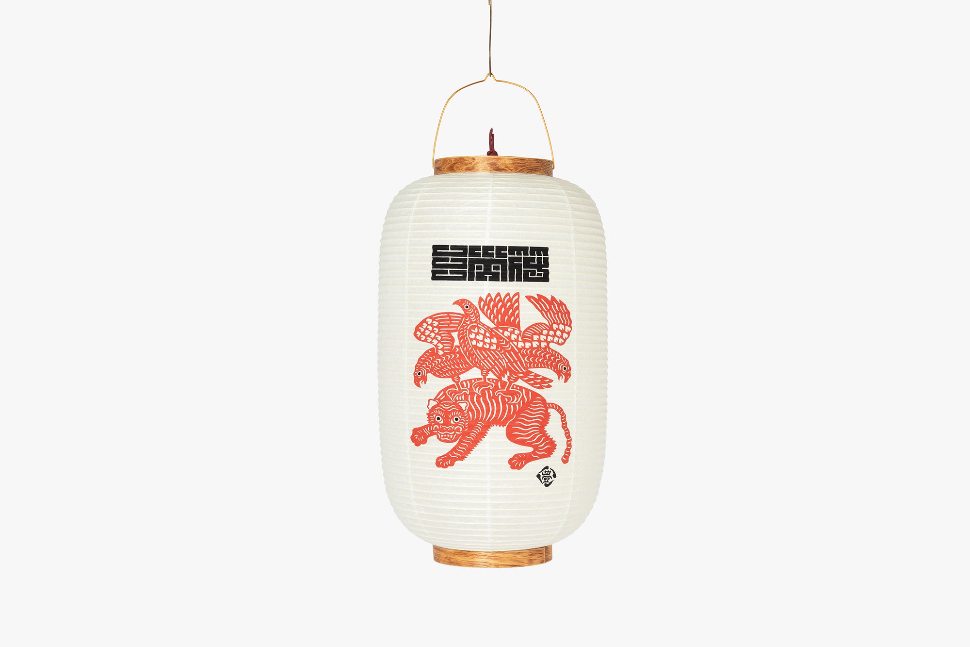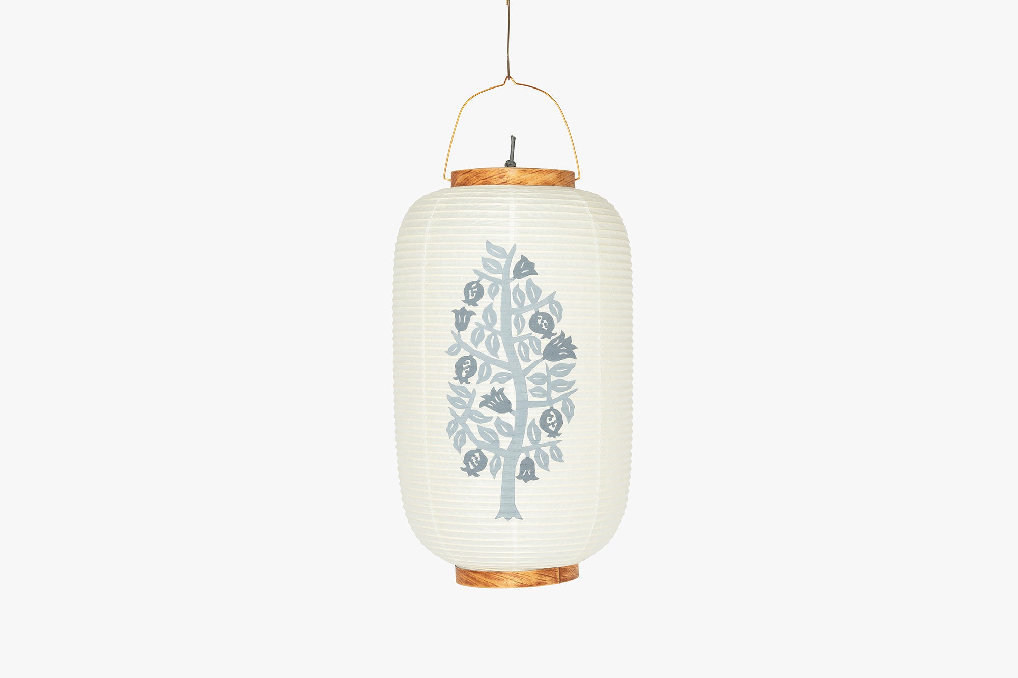 手描き職人のよつめデザインによる絵柄と、柔らかな和紙越しの光を感じる八女提灯。シラキ工芸制作。