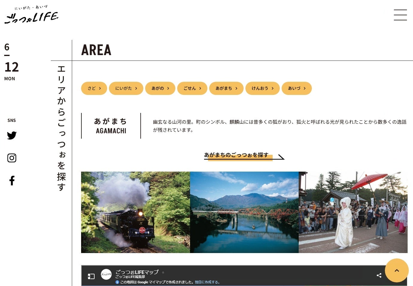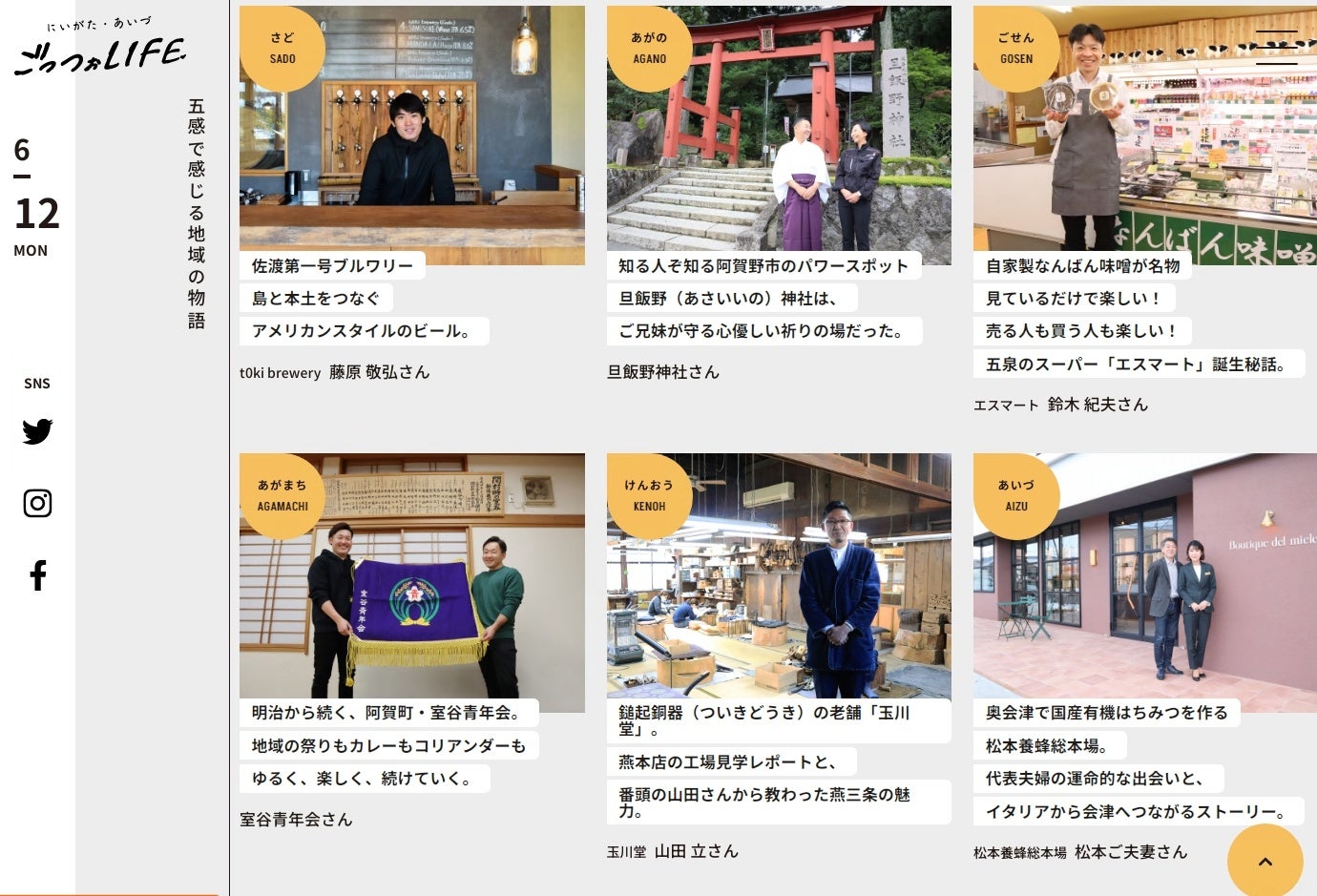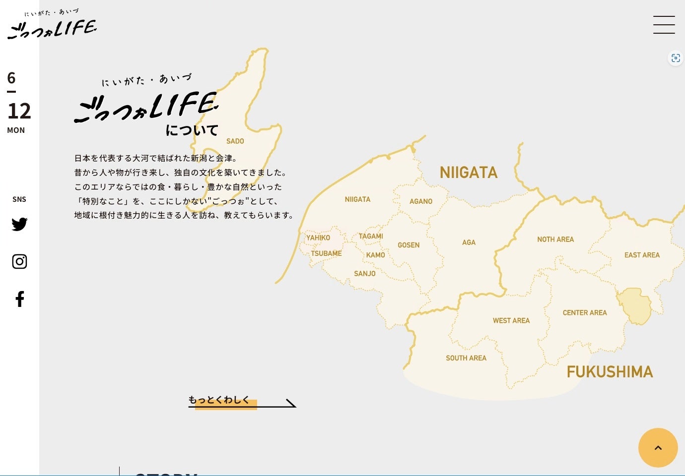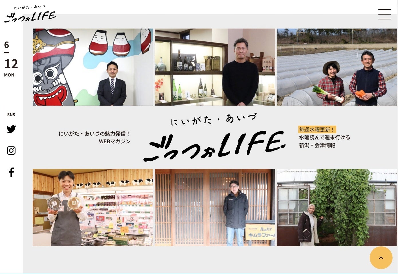 二つの大河を通じて歴史的・文化的なつながりのある新潟・会津エリア(注)の地域振興や交流人口拡大、ひいては地域の誇りと自信の蓄積を目的として、ウェブサイト「にいがた・あいづGOZZOライン“ごっつぉLIFE”」を開設しています。