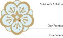 中央の円は根底思想であるSpirit of KAHALAを、これを囲む5枚の花びらはザ・カハラの基本姿勢であるOur Promise を象徴しています。