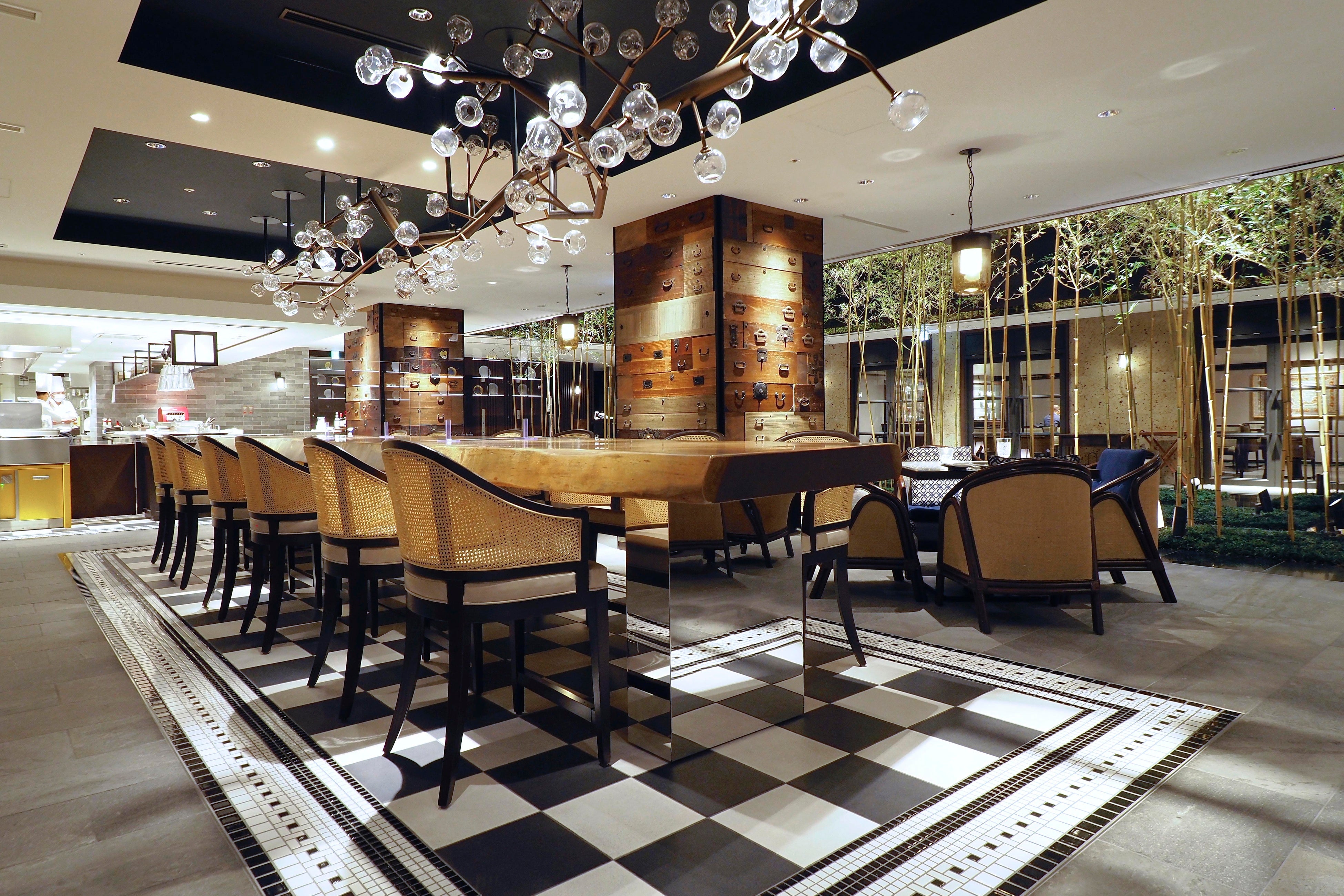 スタイリッシュなオープンキッチンでは、シェフの躍動感が溢れます。また絶妙な火入れにより希少な和牛やシーフード、地元産の新鮮な野菜など素材の旨みを最大限に引き出したお料理を提供いたします。