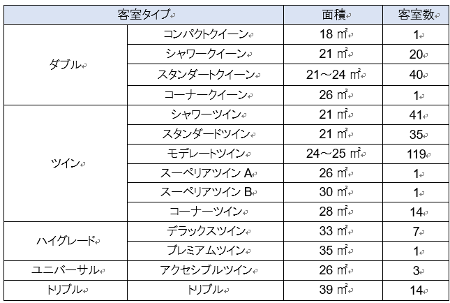 ダブル4タイプ・ツイン7タイプのほか、ハイグレードやトリプルなど用途に応じた14タイプを設定。台湾らしさをモダンに表現し、寛ぎと安らぎを感じられる空間です。