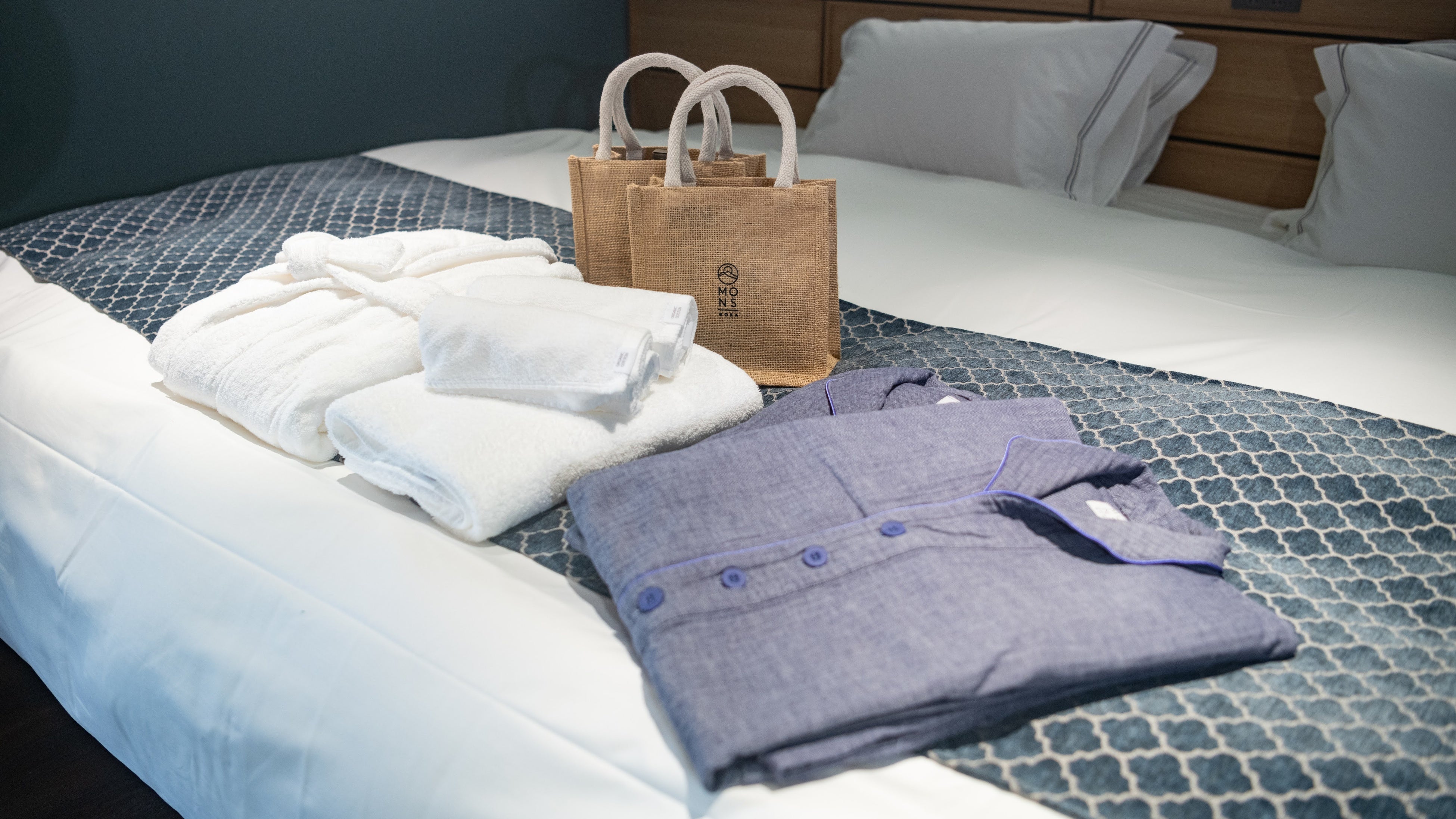MONS GORAのオリジナルバックにはアメニティを入れてスタンバイしております。