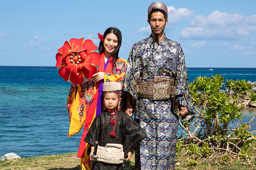 沖縄の伝統衣装である「琉装」は、中国の漢服や日本の和服の影響を受けて発展しました。琉球王国時代の正装で記念撮影はいかがでしょう。