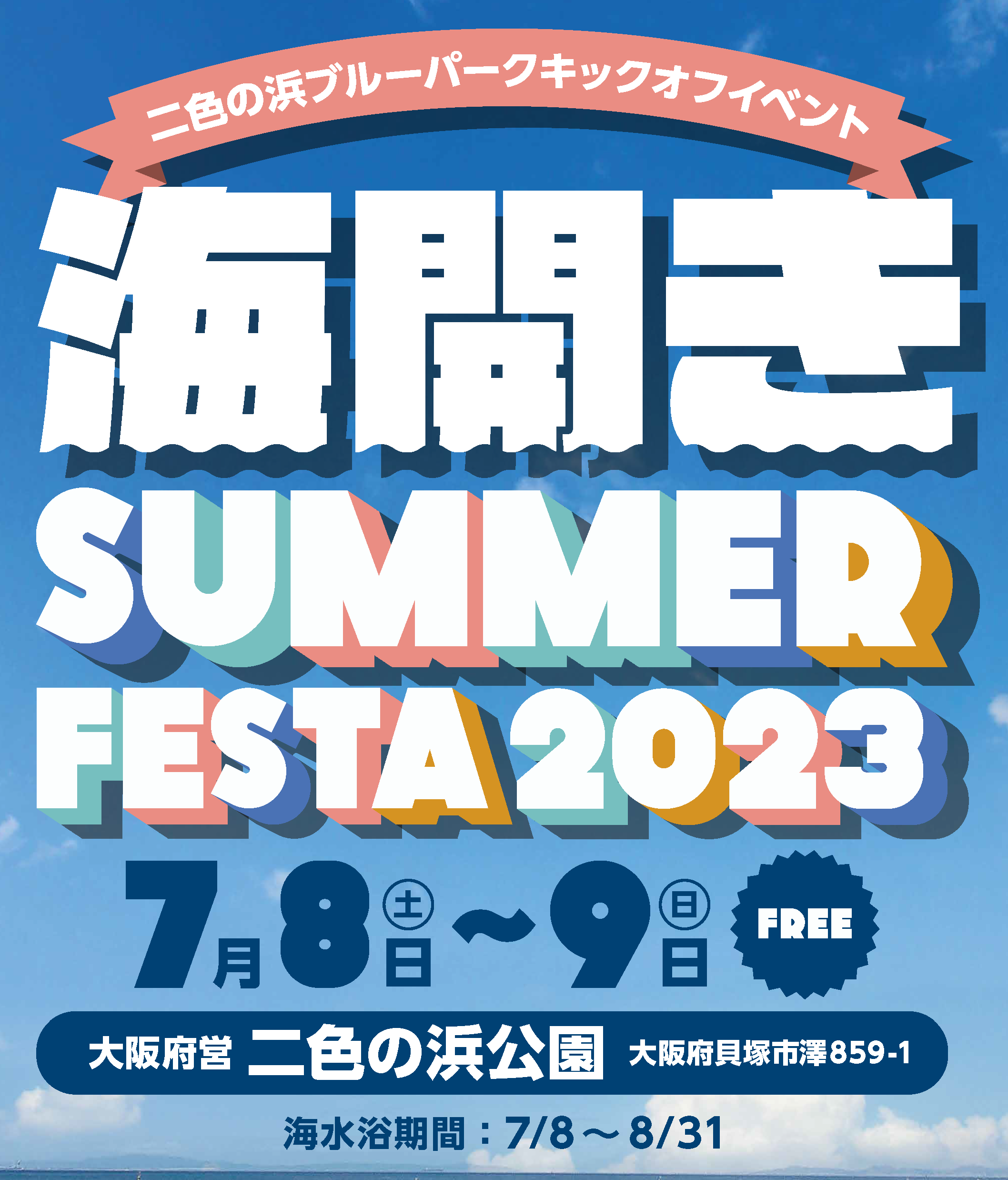 また、隣接する二色の浜海水浴場の4年ぶりの海開きと同日開催する事により、府営公園と海水浴場が一体となって地域を盛り上げます。