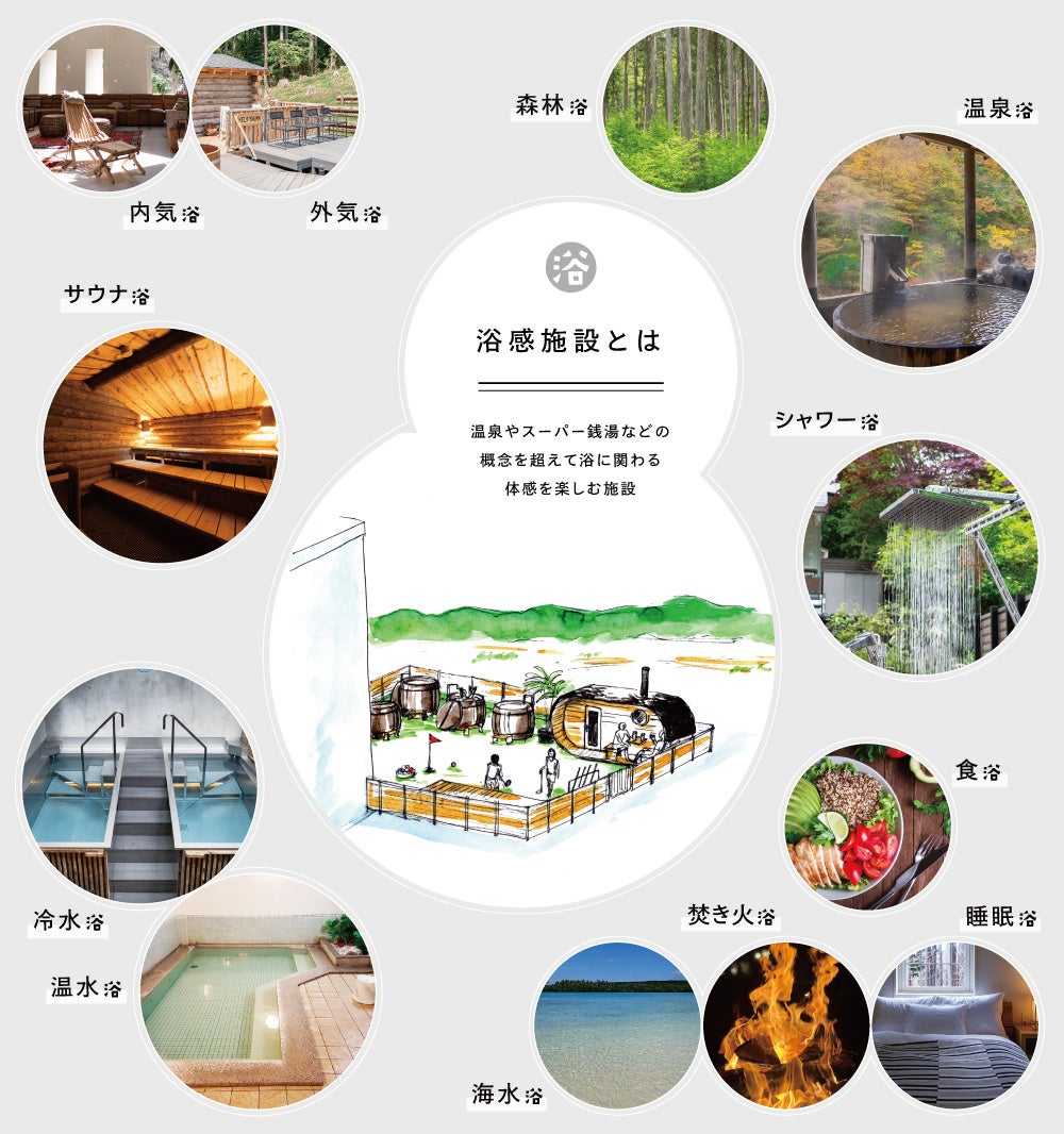 温浴施設、レジャー施設、アウトドア施設などの新たなカテゴリーとして「浴感施設」を定義し、