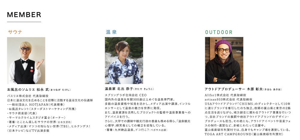 温泉・サウナ・アウトドアなど「浴」に関わる専門家集団。