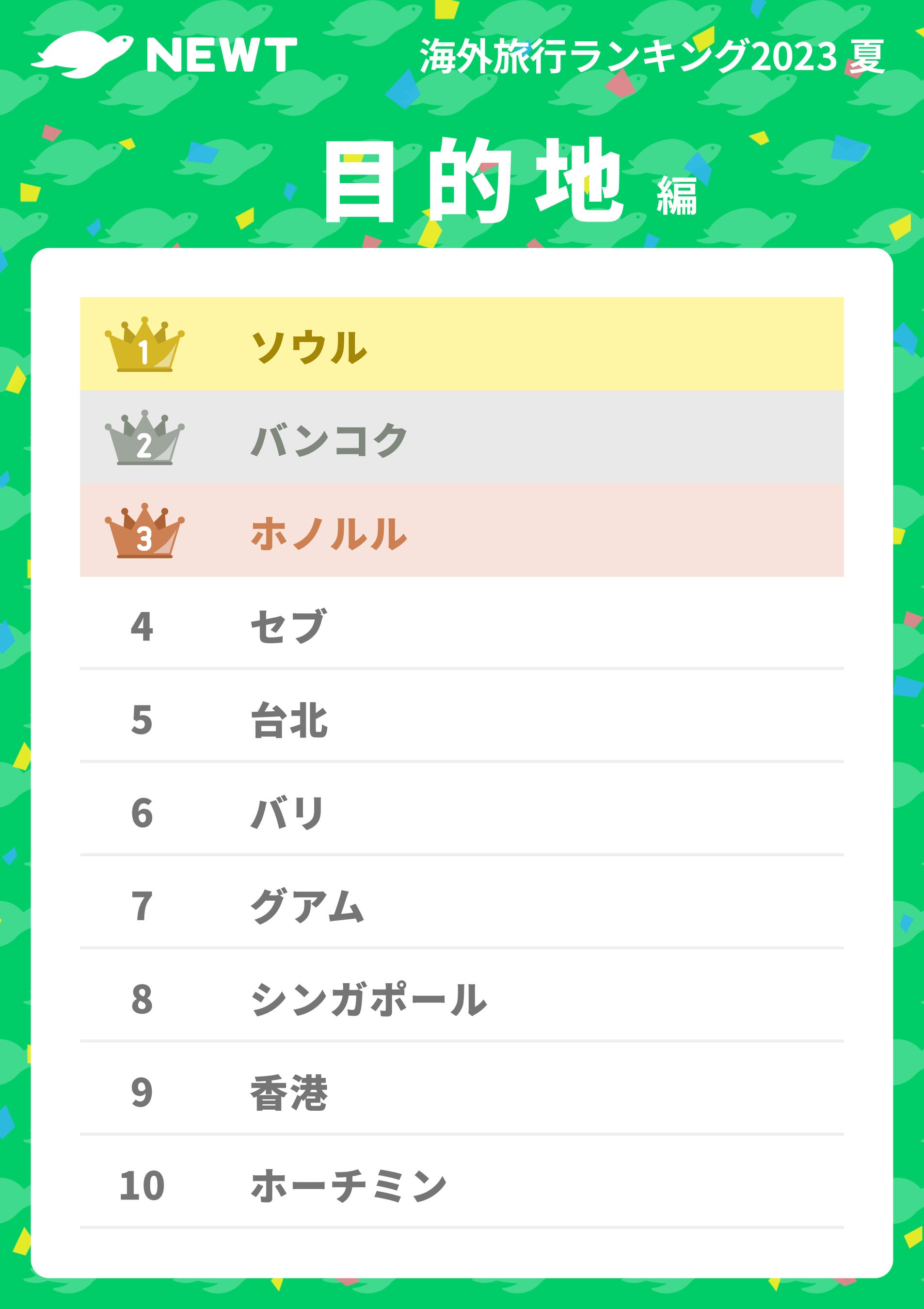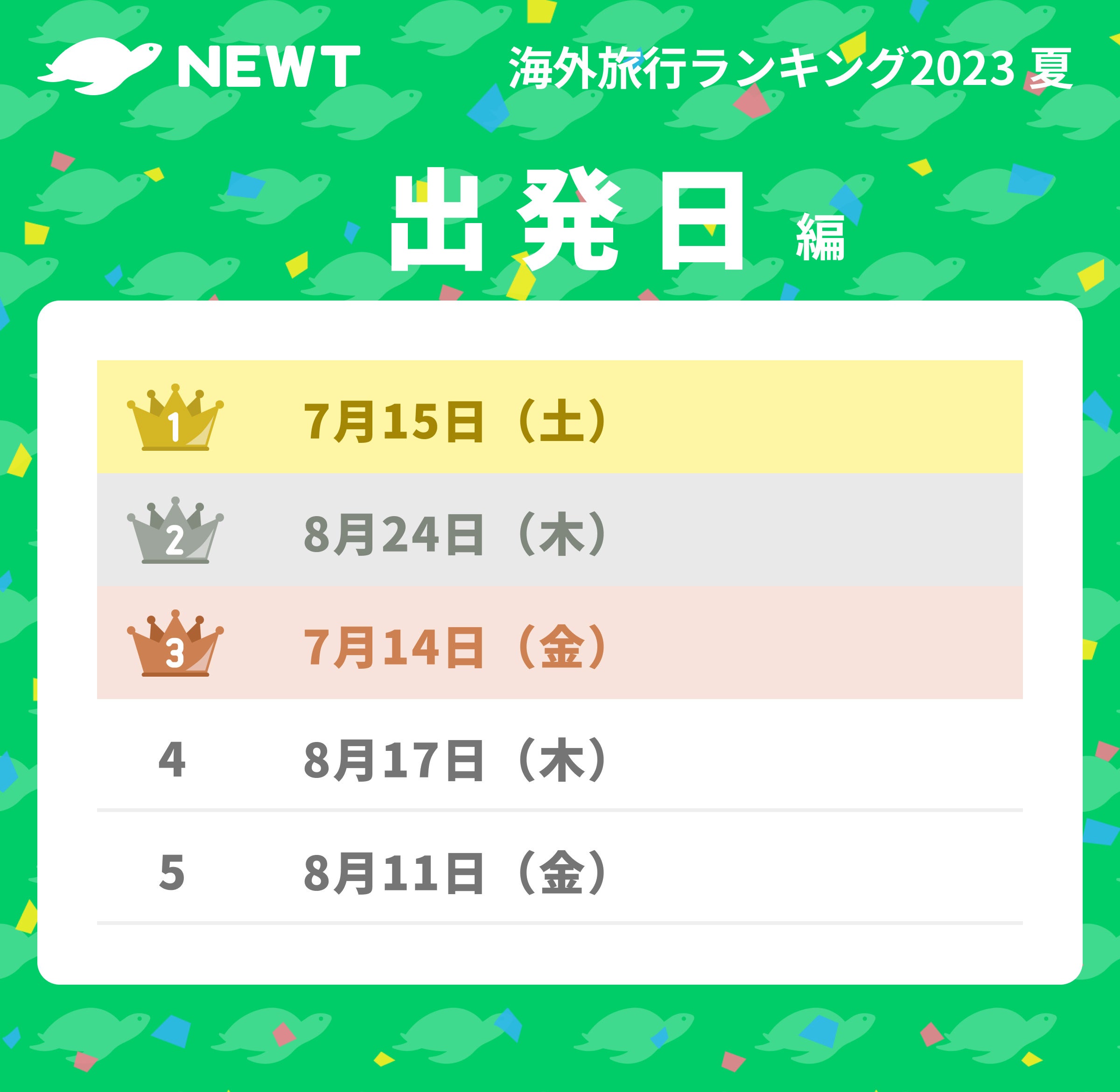 【速報】NEWT 夏休み旅行予約ランキング