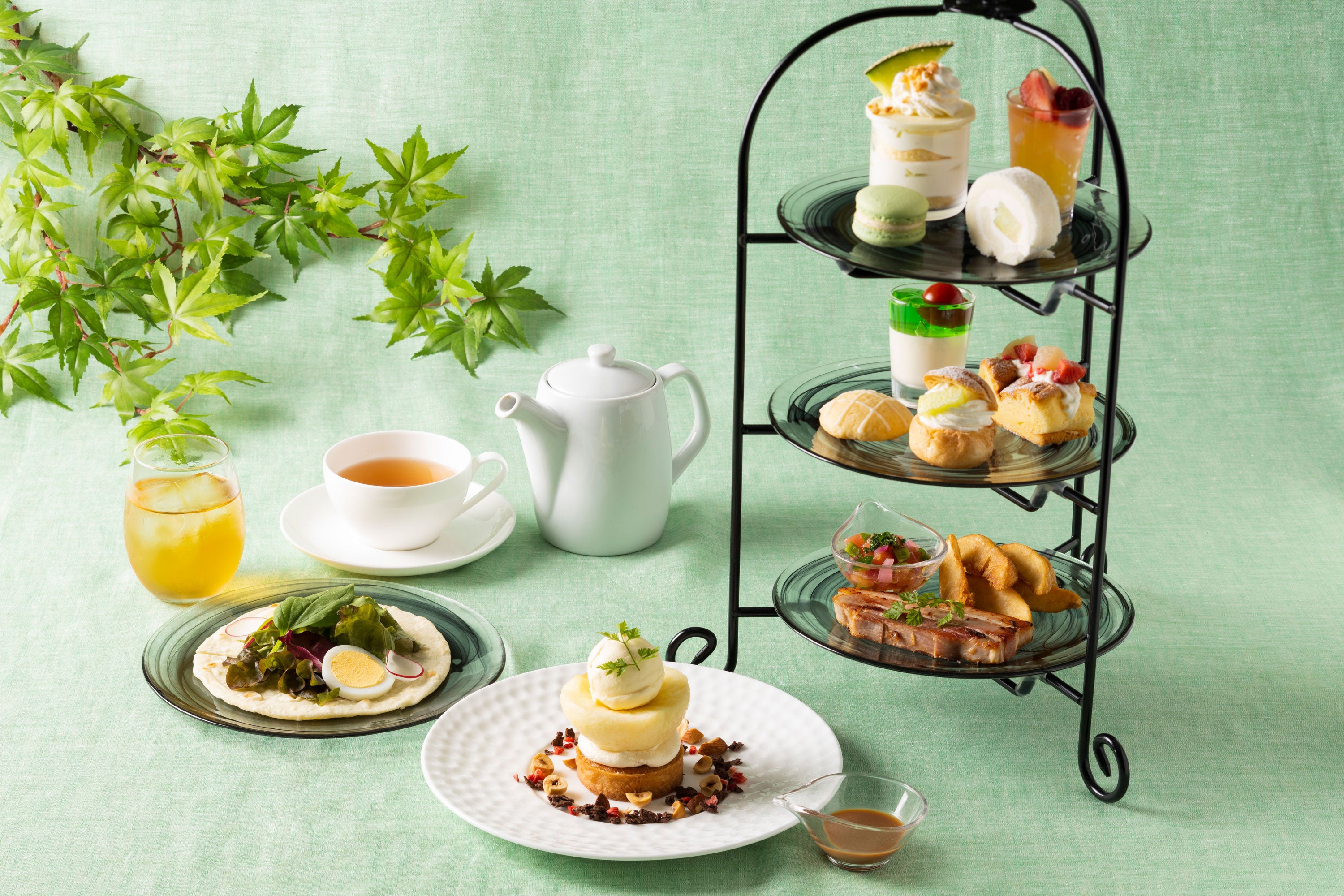 見た目もおいしいスイーツは「パフェ風メロンショートケーキ」、「メロンソーダ風パンナコッタ」、「桃のシフォンケーキ」などをご用意。