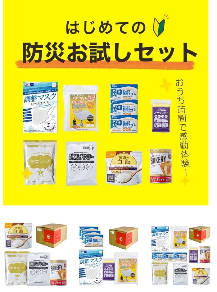 カジュアルに防災体験をーー。備えのある暮らしの第一歩として、まずは非常食や防災グッズを体験していただきたい。そんな願いを込めてSAIBOU PARKの防災士が監修した、オリジナルの防災お試しセットです。いつもの食卓やピクニックで、かんたんにお楽しみいただける、防災あんしん体験をお届けします。