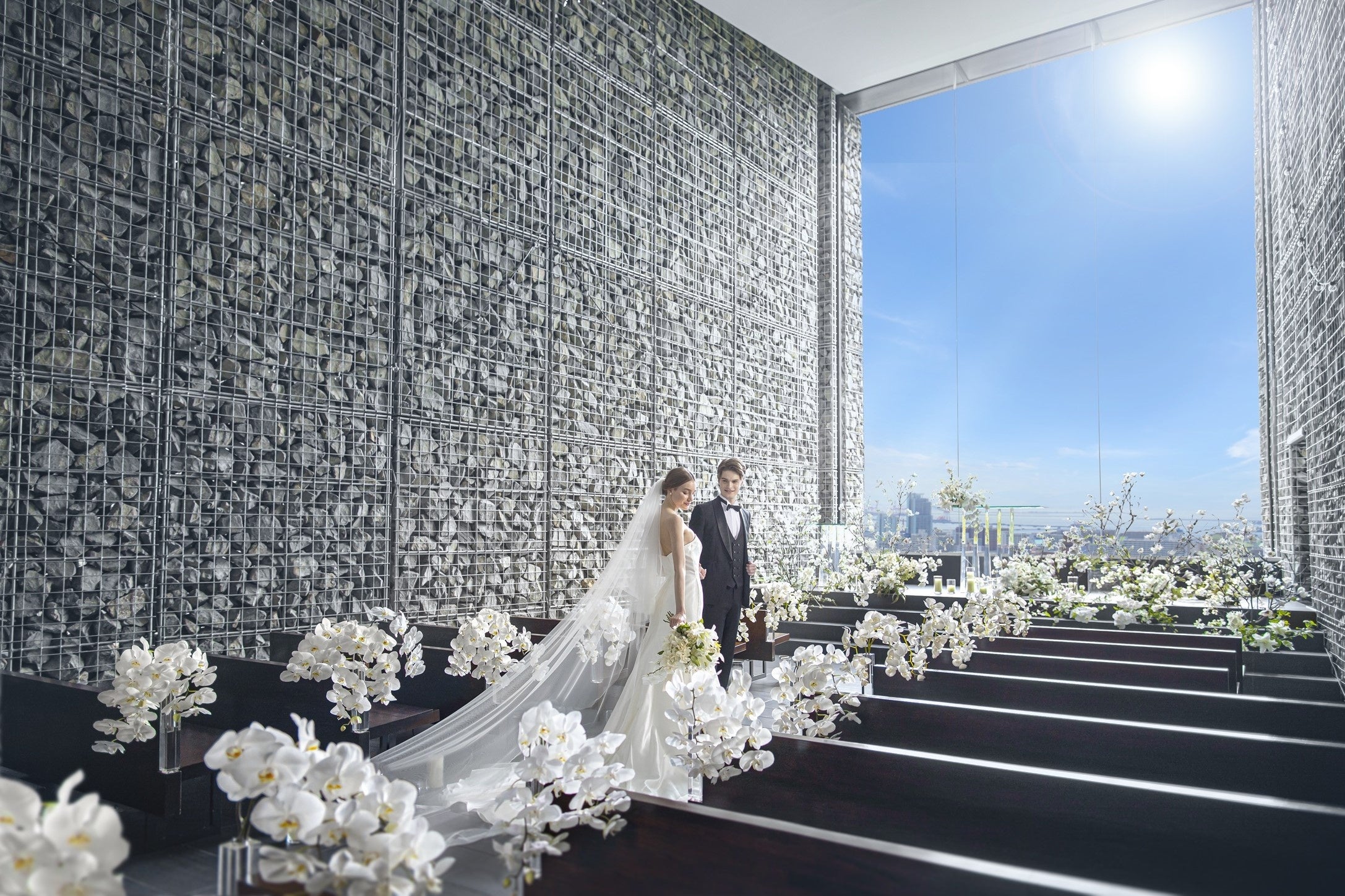 天空(そら)の教会を舞台に、新郎新婦の誓い、家族や友人との絆から生まれるドラマティックなセレモニー。