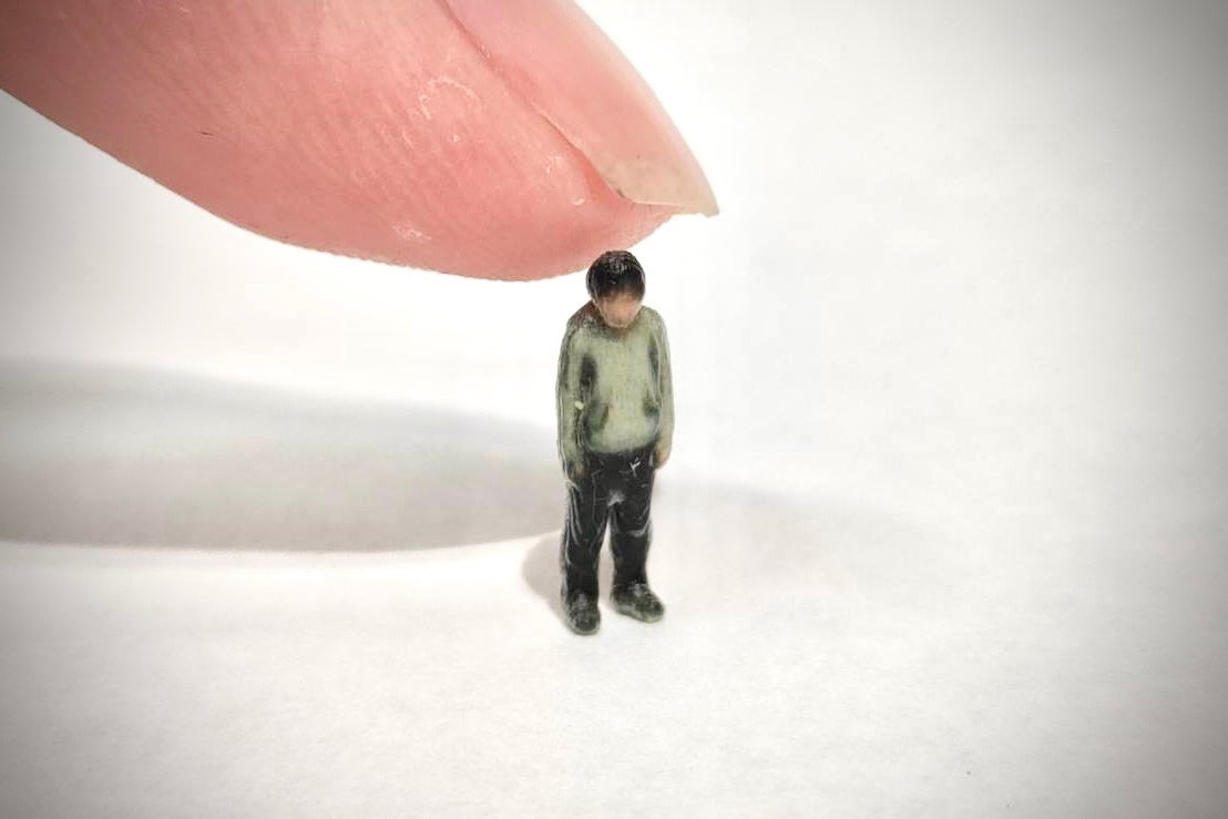 スモールワールズには、大型3Dスキャナでお客様の全身を撮影してミニチュアフィギュアを提供するプログラムがあり、人気を博しています。今回、個展向けに1/150のフィギュアを作品に設置するサービスをご提供します。シティスケープスタジオの作品は今後も全国で展示される予定ですので、「あ!見つけた!」とご自身のフィギュアを発見することができます。