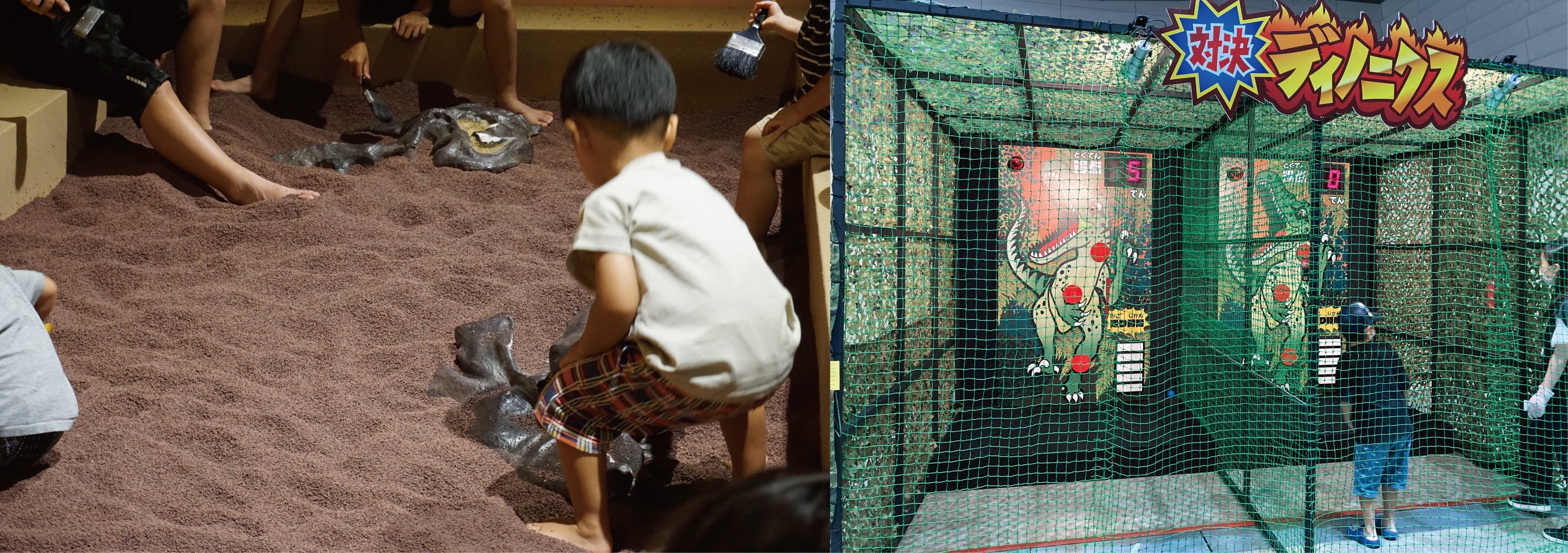 化石発掘を体験できるプールやボール投げなど、からだを動かして遊ぶ事ができます。