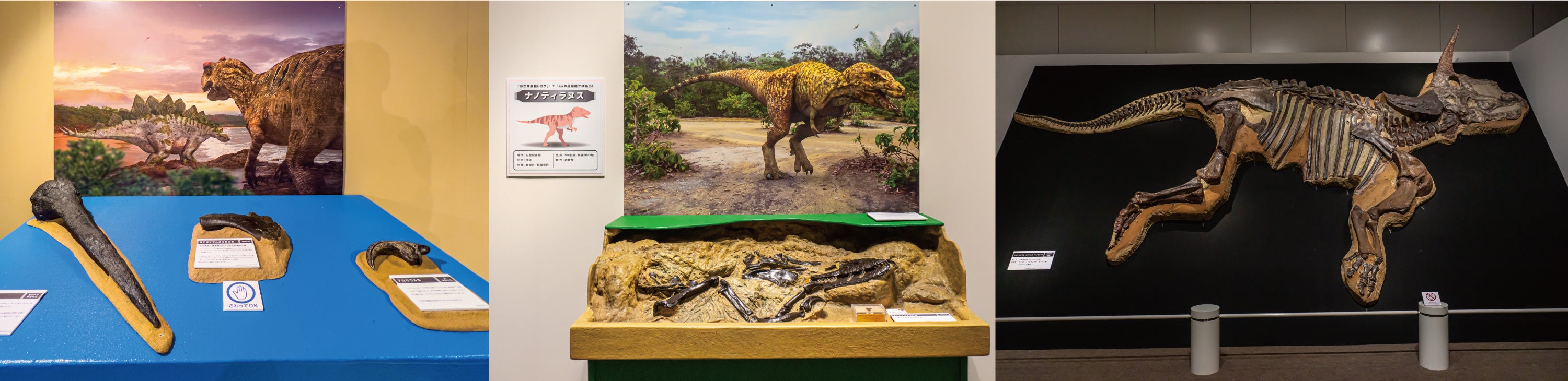 さわって学べる化石展示の数々や、全長6mを超えるトリケラトプスの半身骨格など、貴重な展示が盛りだくさんです。