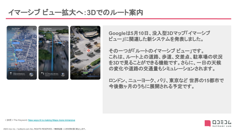 イマーシブ ビュー拡大へ:3Dでのルート案内