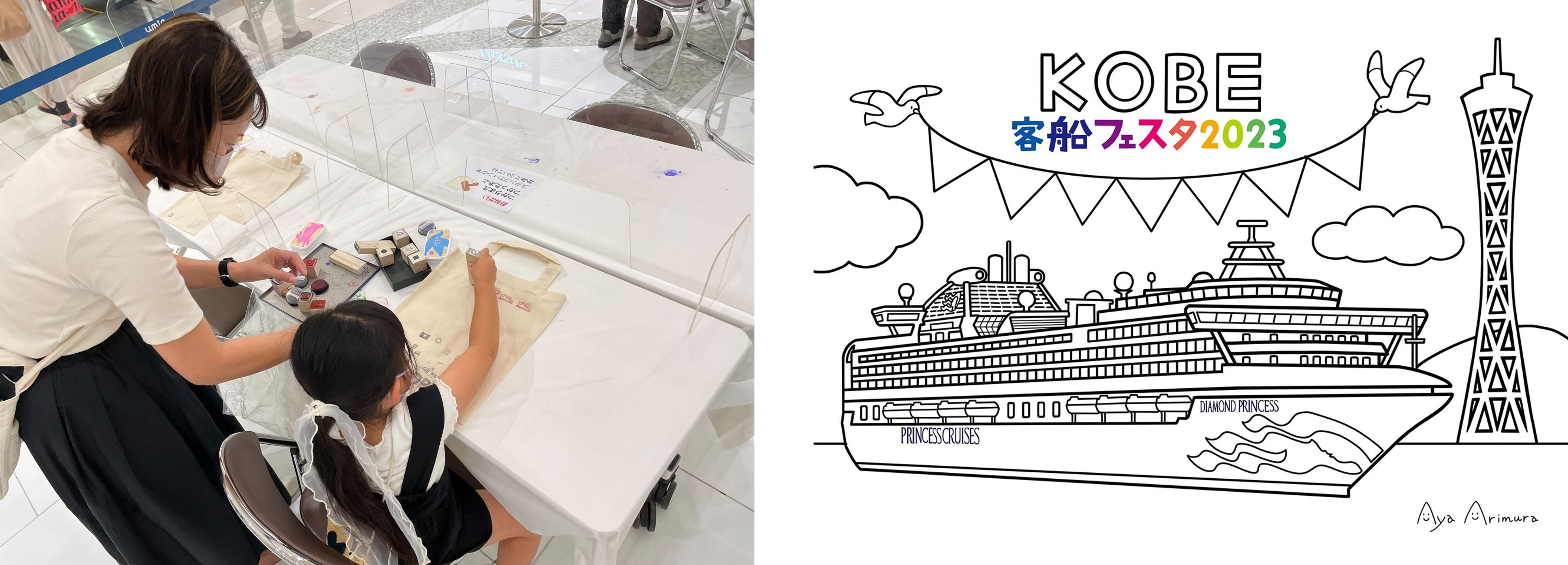 ・人気イラストレーター有村綾さんの描く「みなとまち神戸とクルーズ客船」ぬり絵イベント