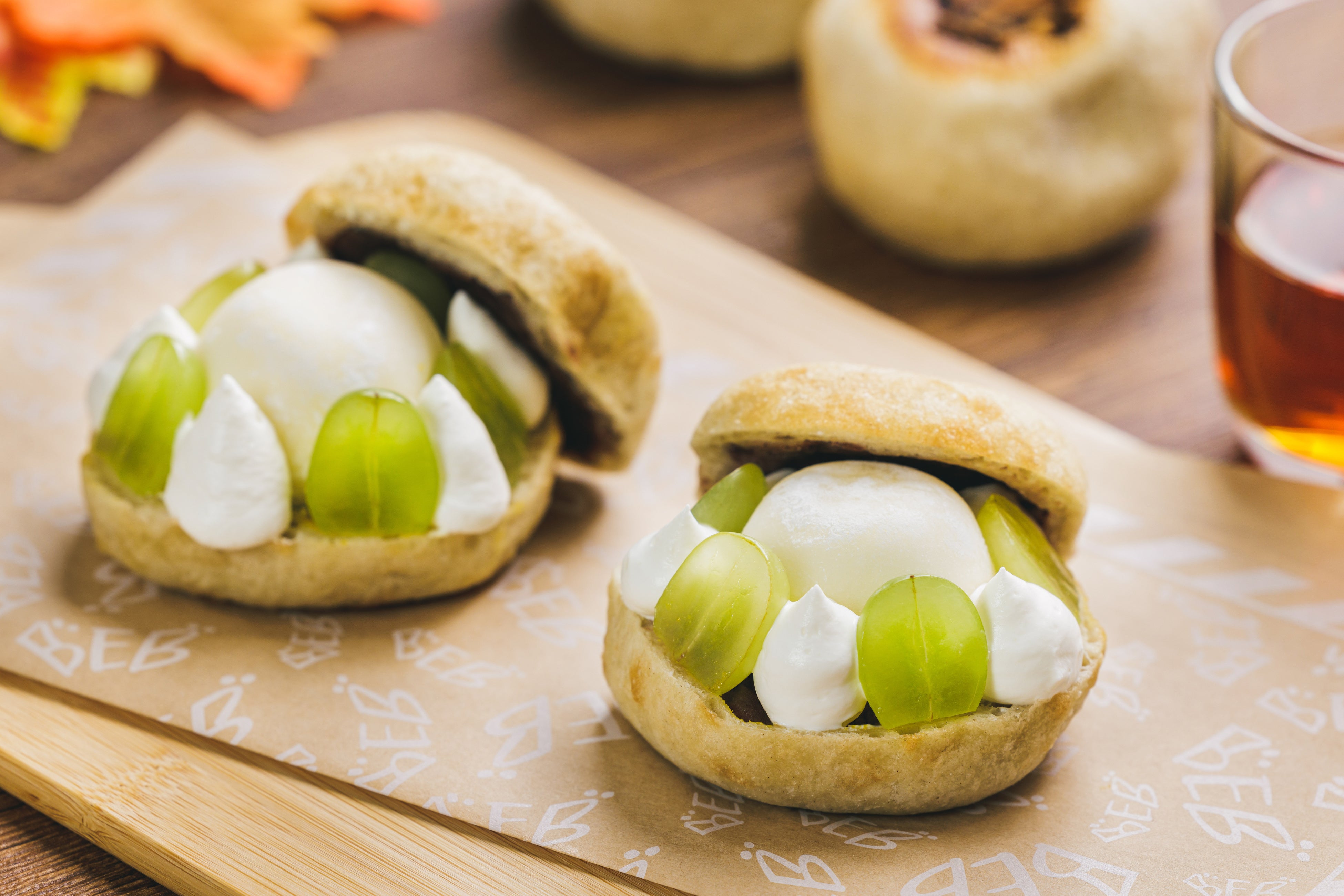 おやき3つと、フルーツやクリームチーズなどのトッピング5種が含まれた「BEB スイーツOYAKIセット」を販売します。自分でおやきを温めて、好きなトッピングを挟んでオリジナルのおやきを楽しむことができます。自分好みのスイーツOYAKIを作るもよし!仲間とシェアして、色々な味を試すもよし!秋の風を感じる中庭で食べるのがおすすめです。