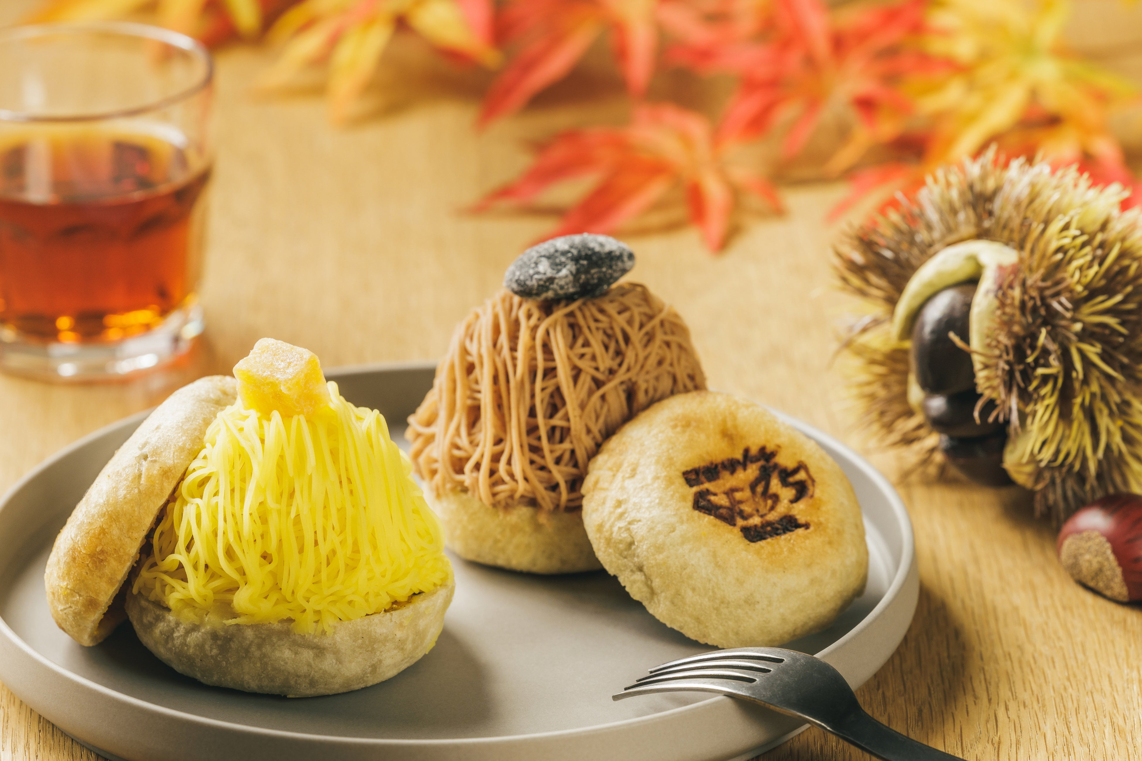 あんこの入ったおやきの上に、大胆にまるごとモンブランをのせたスイーツOYAKIです。あんこの甘さと秋ならではの栗やさつまいもクリームのやさしい甘さがマッチしている、ボリューミーな一品です!