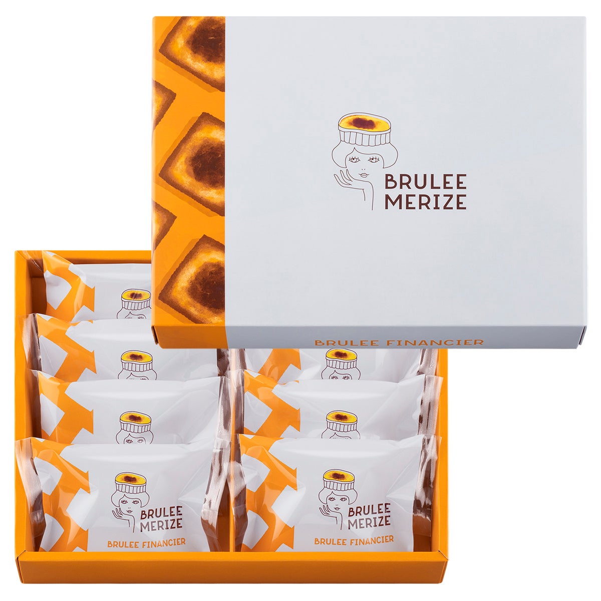 北海道発酵バターと香り高いスペイン産アーモンドを使ったバターフィナンシェ。表面を香ばしく焦がしたブリュレショコラスプレッドを埋め込んで、しっとりとジューシーに仕上げました。