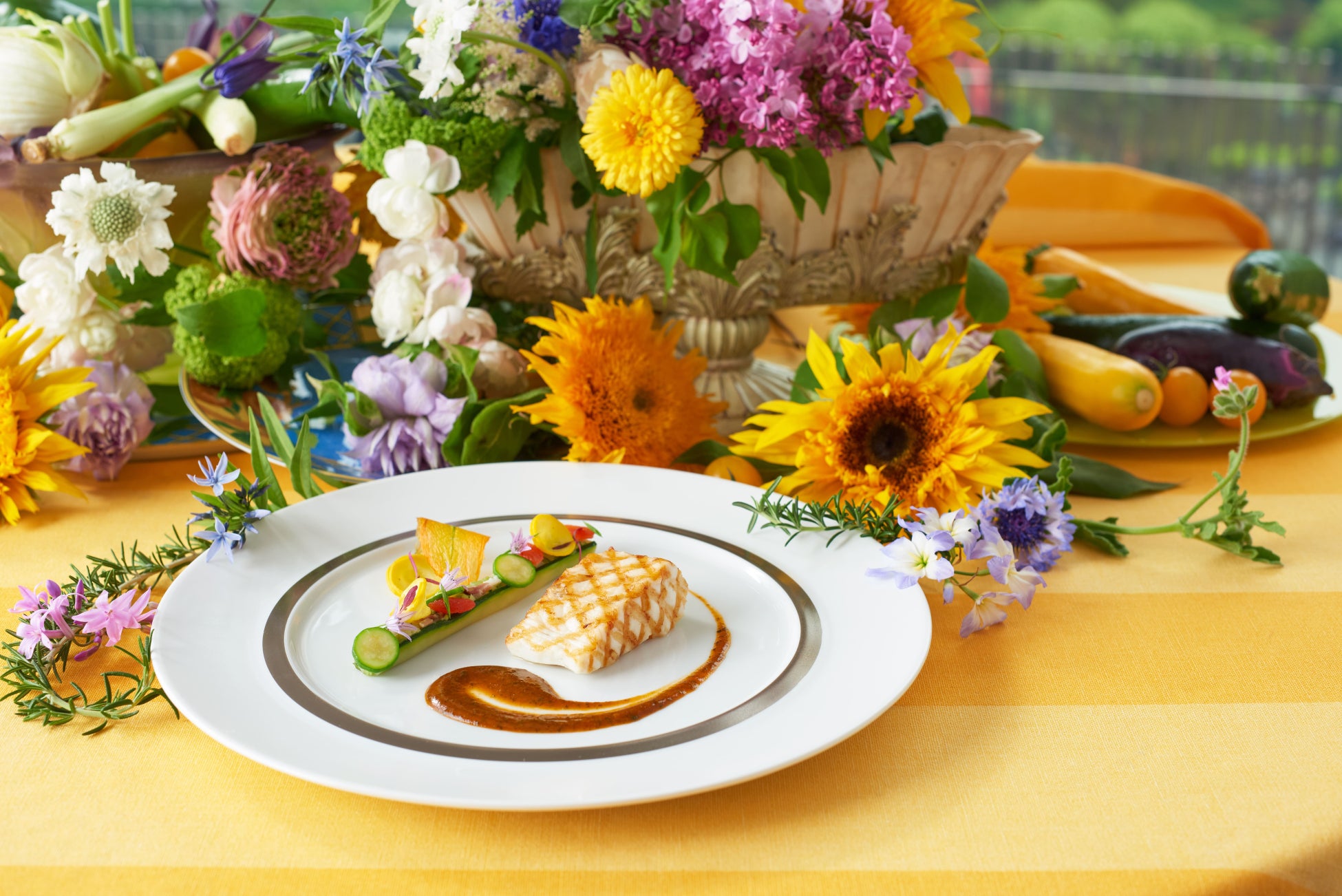 スズキのグリエ マジョラムとシトロンのピストゥー 南仏風ズッキーニのファルシ添え