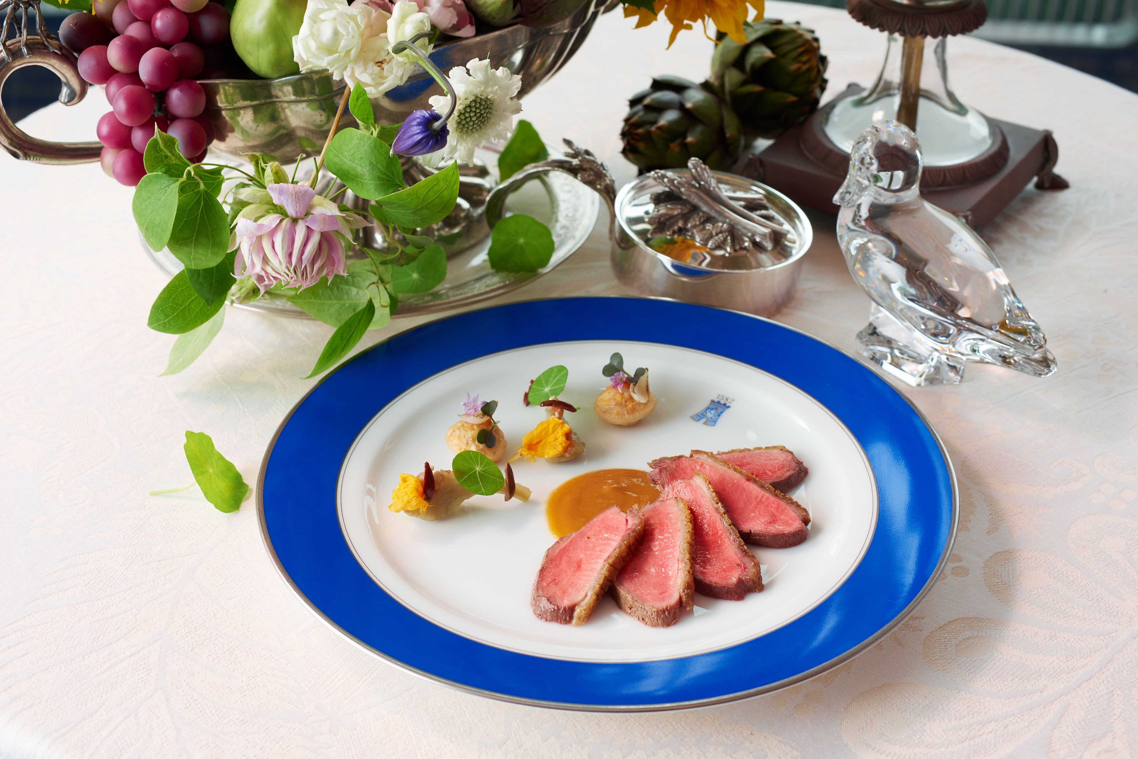 2019年、日本在住シェフとして37年ぶりにフランス料理界最高峰の称号”M.O.F.”(フランス国家最優秀職人章)を受章した、エグゼクティブシェフ ルノー・オージエも今年で就任10年目を迎えます。そんなルノー・オージエが、”彼の地で過ごす休日”に着想を得て作り上げた夏季限定コースメニューが『 LA MER (ラ・メール) 』です。伝統の幼鴨料理はもちろん、まばゆい日差しのもとで旬を迎えた彩り豊かな夏野菜や海鮮など、生命力あふれる夏の美味をお愉しみいただけます。