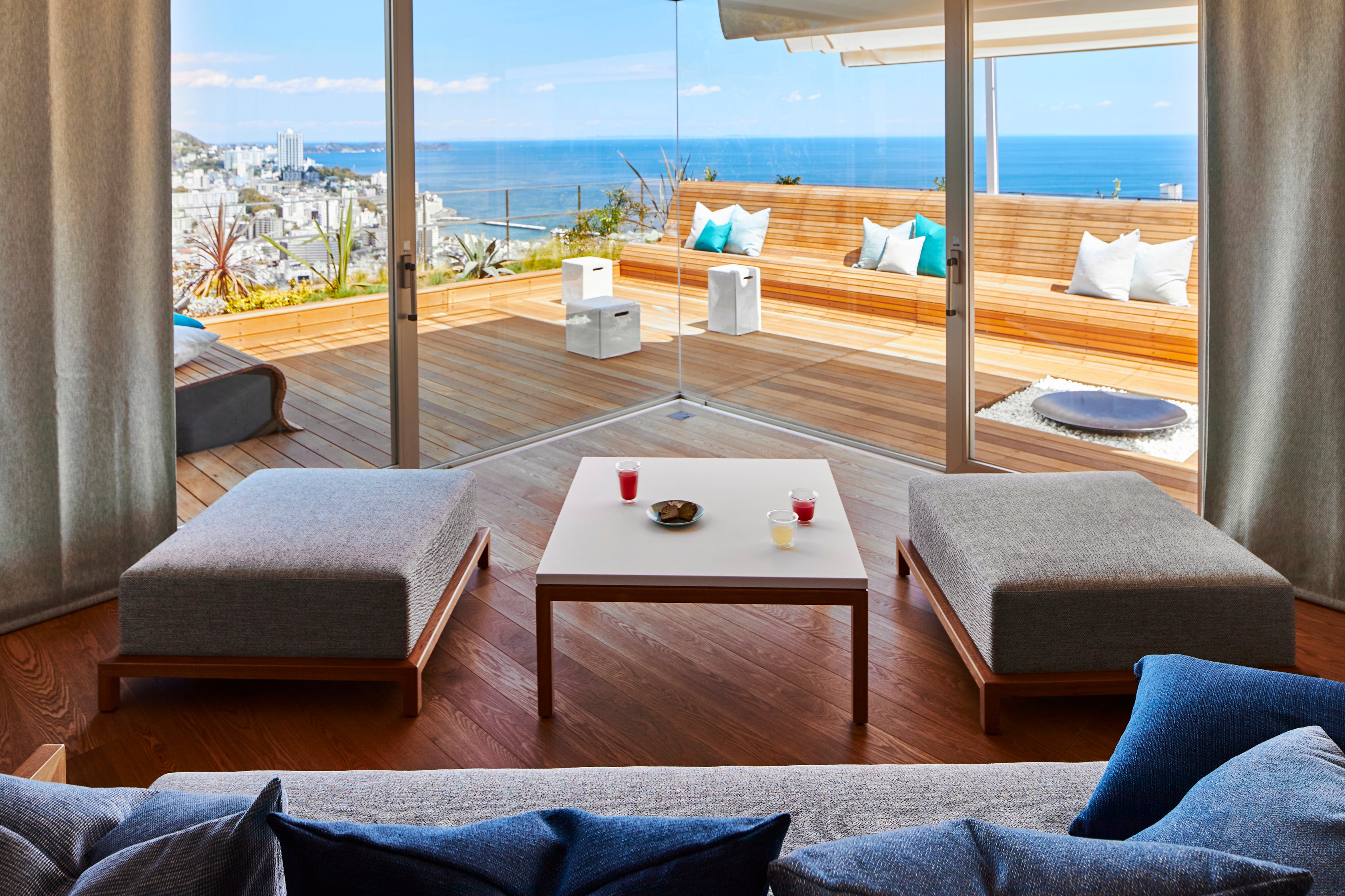 熱海の山上の地に佇む全室オーシャンビューのリゾートホテル。スタイリッシュな空間デザインに加え、相模湾と熱海の街並みを一望する絶景が魅力。熱海の花火や夜景を存分に楽しめる環境が整う。