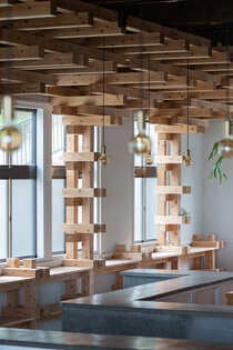築70年以上の木造建築を活かし、地元宮大工の力を借りて作られた筋交装飾や、旧役所支所の面影を残しつつワーケーションの場としての再構築された空間が、片浦のロケーションと相まって、非日常感を高めます。
