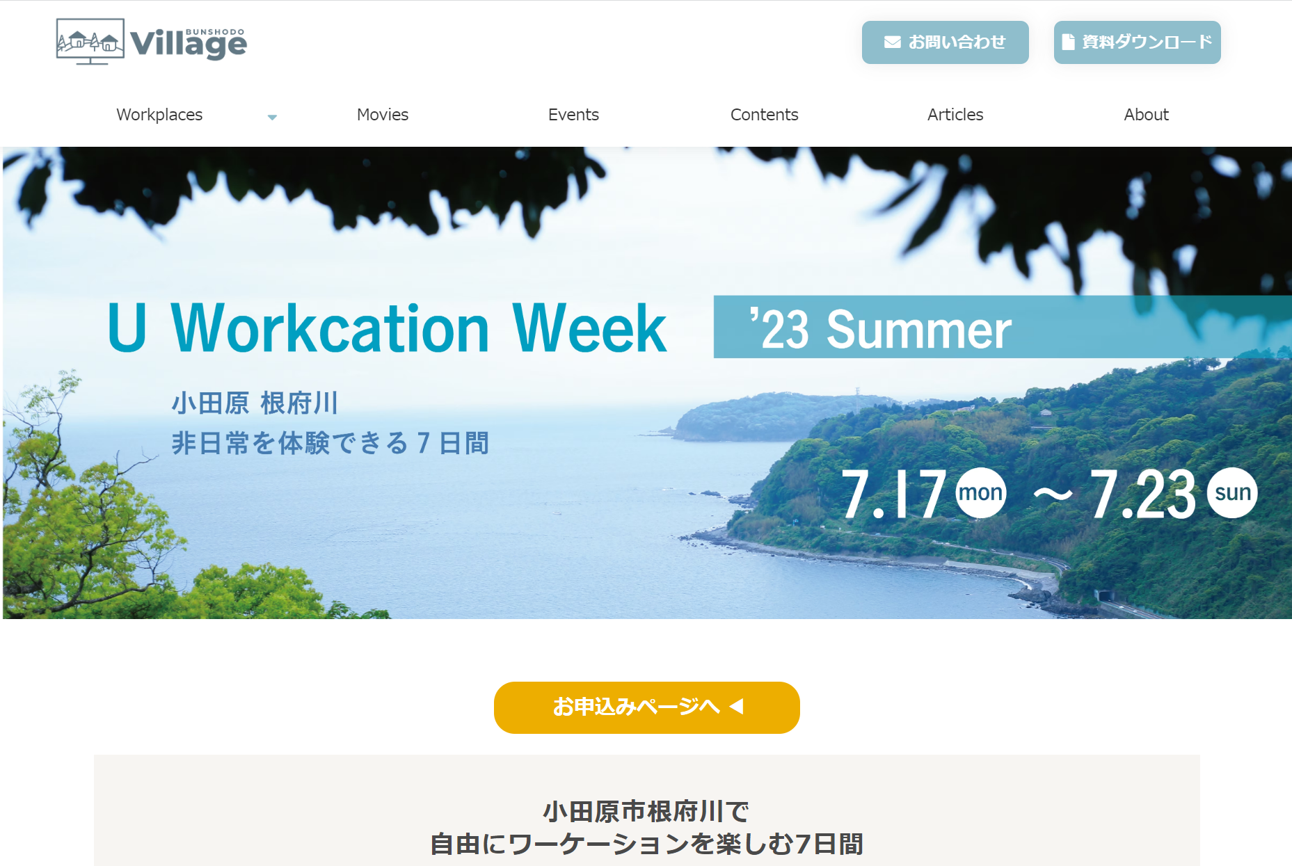 株式会社文祥堂(本社:東京都中央区、代表取締役社長:佐藤義則)がリノベーションし、ワーケーションの場とサービスを提供している小田原市根府川のWorkcation House U(ワーケーションハウス ユー)で、7月17日(月)~23日(日)にワーケーション体験イベント「U Workcation Week ’23 summer」を開催いたします。