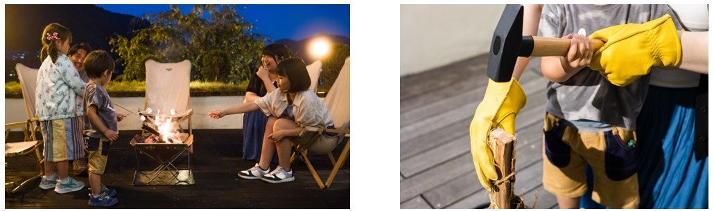 • ❶ 焚火を囲んだ家族の語らいを、薪割りから体験できる貴重な体験価値を添えて