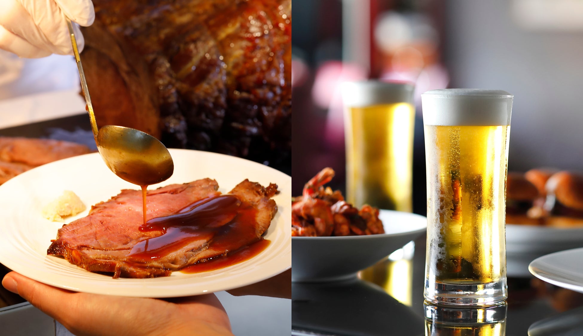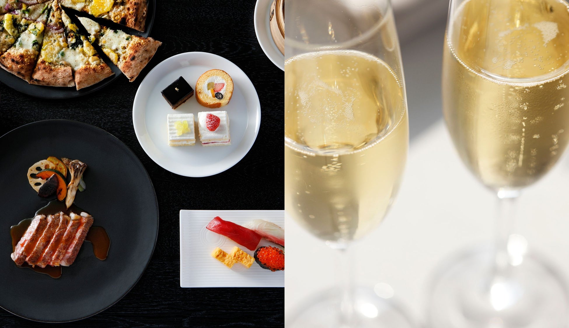 ビュッフェでは「美味と健康」をテーマに、ローストビーフなどのホテル王道メニューのほか、植物性代替食品を使った話題の次世代グルメも含む、計50種以上のメニューよりお好きなだけお召し上がりいただけます。よく冷えたドラフトビールと唯一無二の絶景、ホテルメイドの多彩な美食で贅沢な時間をお過ごしください。