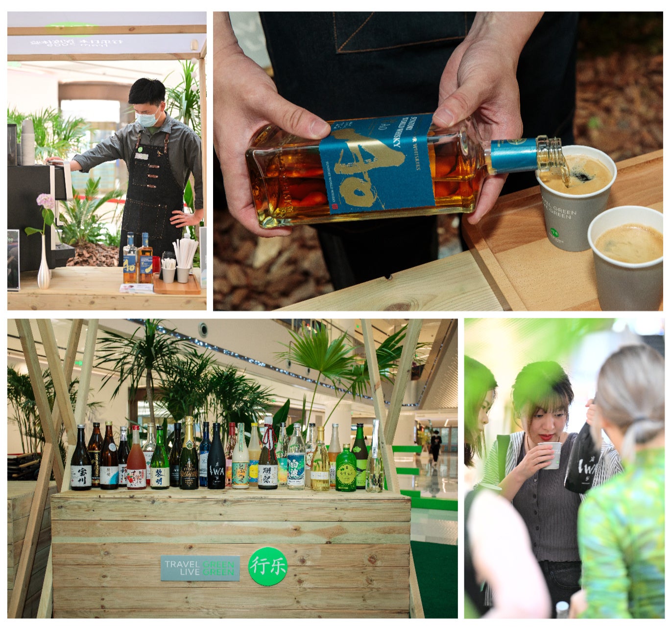 本イベントは、2023年5月18日(木)から5月23日(火)までの6日間、上海中信泰富広場 LG中庭 GREEN SPACEで行われました。初日の開幕式をへて、北海道、静岡県、富山県、九州地区、沖縄県など日本各地のエコ観光や伝統文化を紹介するワークショップを実施しました。また、「行楽CAFE」を期間中に常設し、サントリーJUSTIN COFFEEと連携し、ウイスキー入りの特製コーヒーの試飲を提供し、コーヒー文化が盛んな上海の若年層にウイスキーの魅力を楽しんでいただきました。「行楽SAKE Bar」では、初夏の季節にあう日本各地のお酒や日本酒の楽しみ方を提案する目的で試飲提供しました。獺祭やIWA5といった人気ブランドの日本酒や焼酎だけでなく、スパークリングワインやリキュール、梅酒、モヒートなどを提供しました。