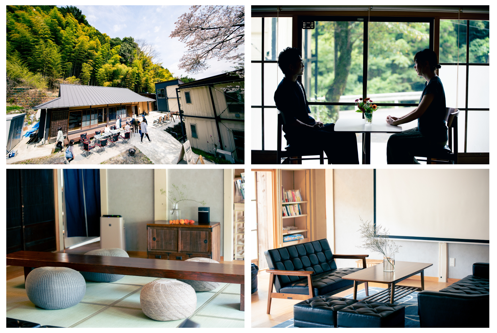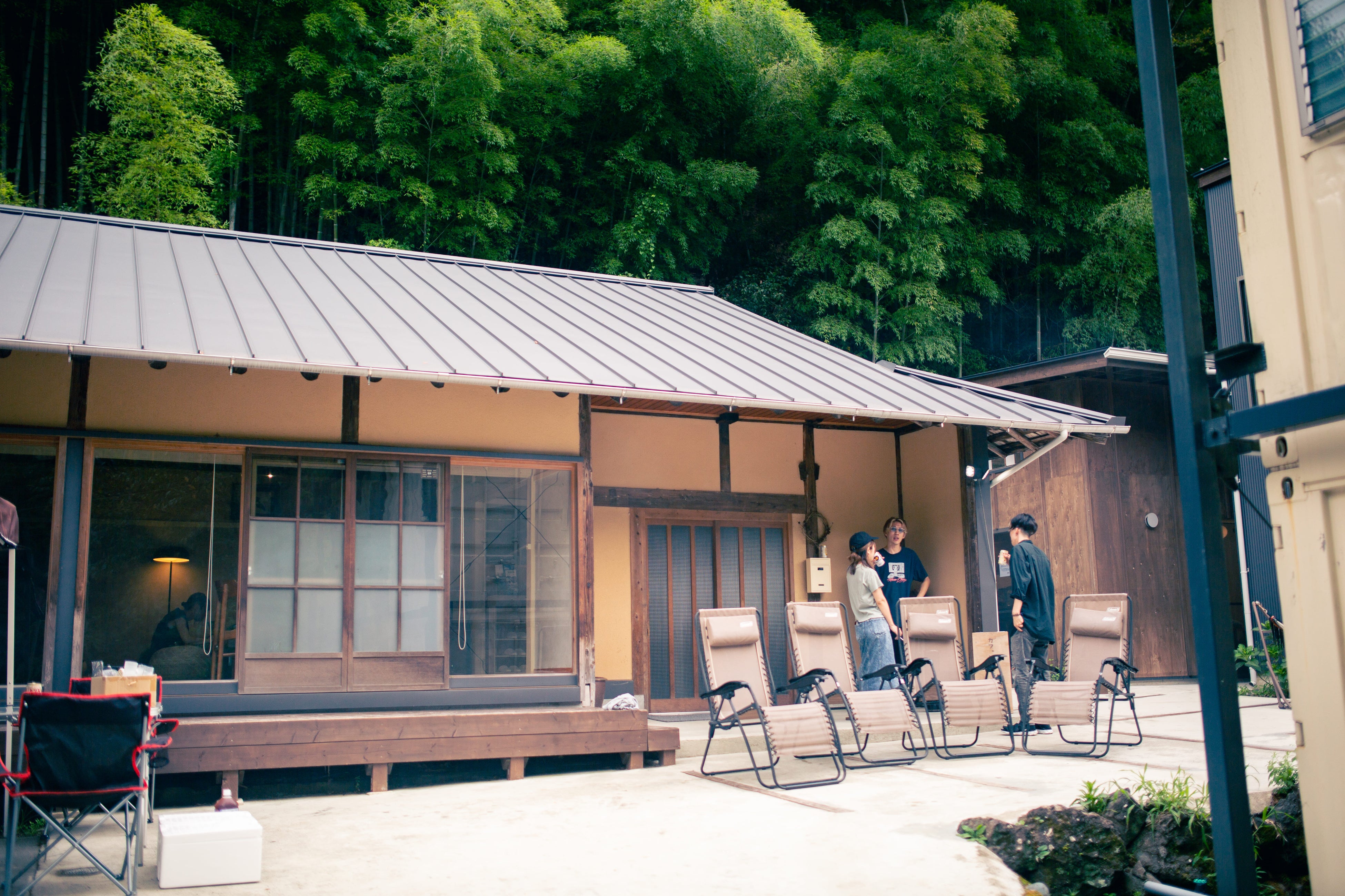 山梨県南部町に位置する「五番地」は築100年の古民家を改修した一棟貸切の宿です。三棟の宿泊棟、コワーキングスペースやキッチンがある母屋、 カフェや食事を楽しめるカフェを用意しており、施設全体を使えば最大20名のお客様をお迎えすることができます。家族や友人との旅行にはもちろんのこと、十分な広さがあるので企業の合宿やワーケーションにもぴったりな施設です。
