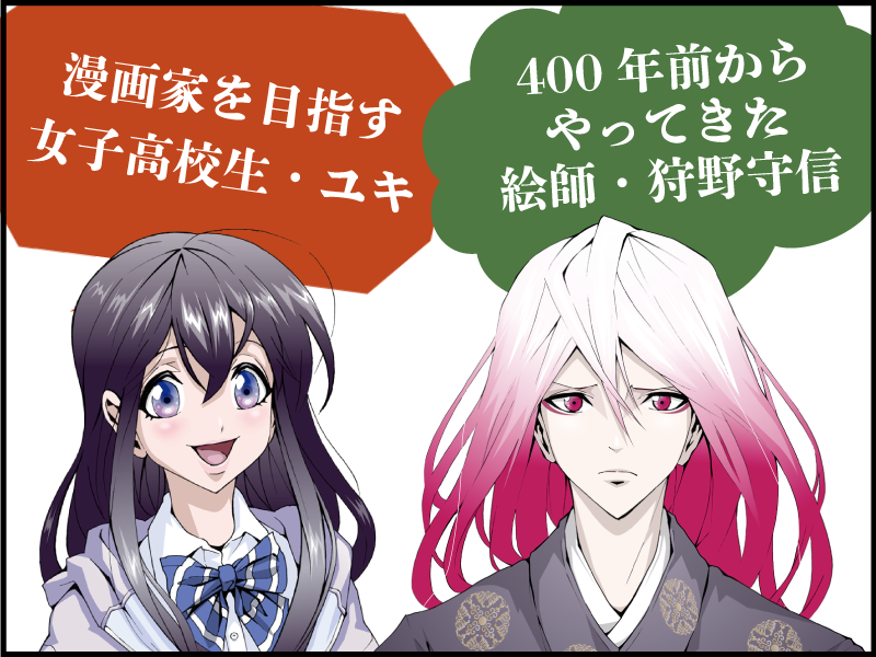 あなたは、漫画家を目指す高校生の”ユキ”と400年前の時代からやってきた”狩野守信(後の狩野探幽)”と一緒に街巡りをすることとなります。