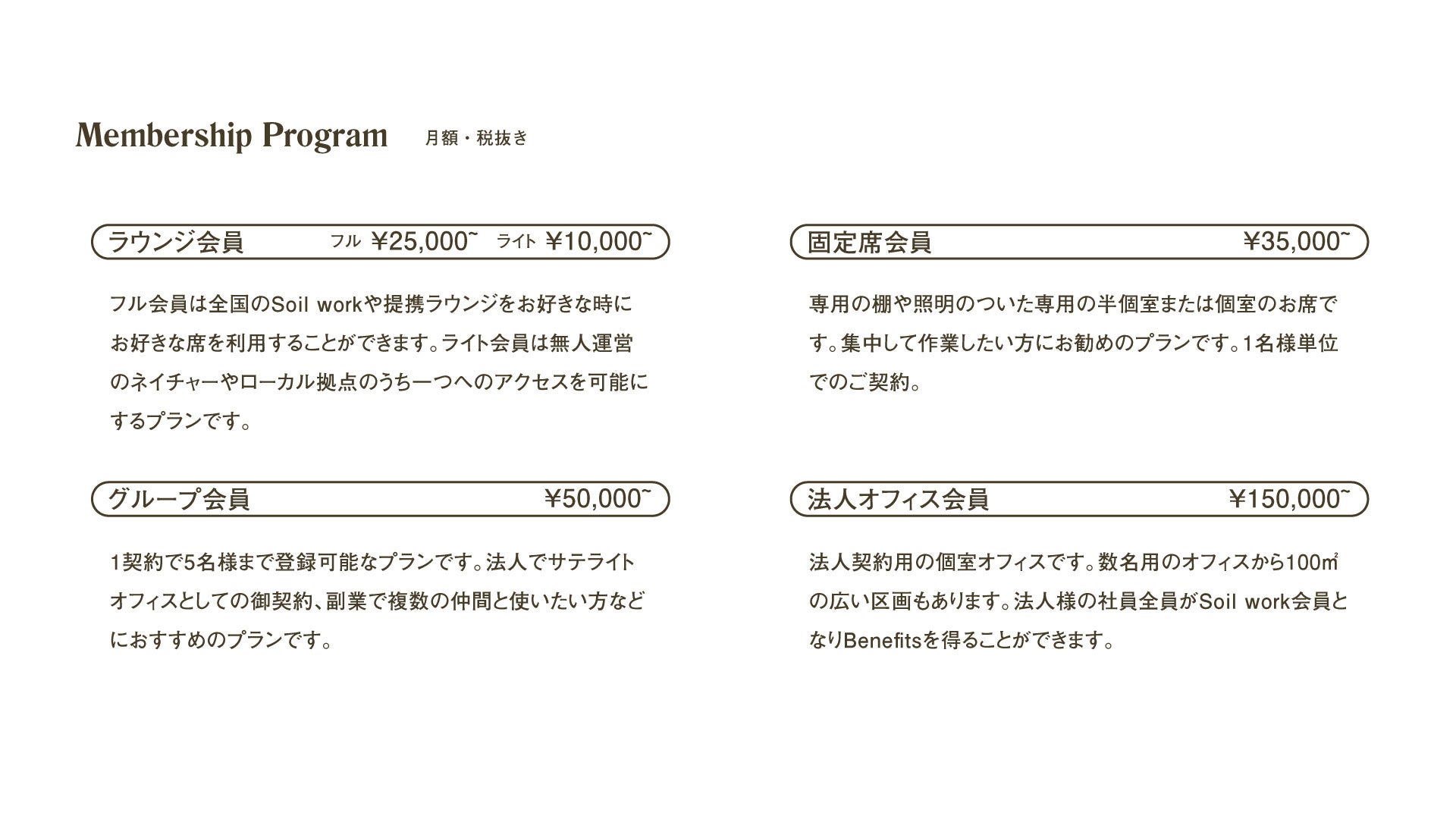Soil workの会員種類について