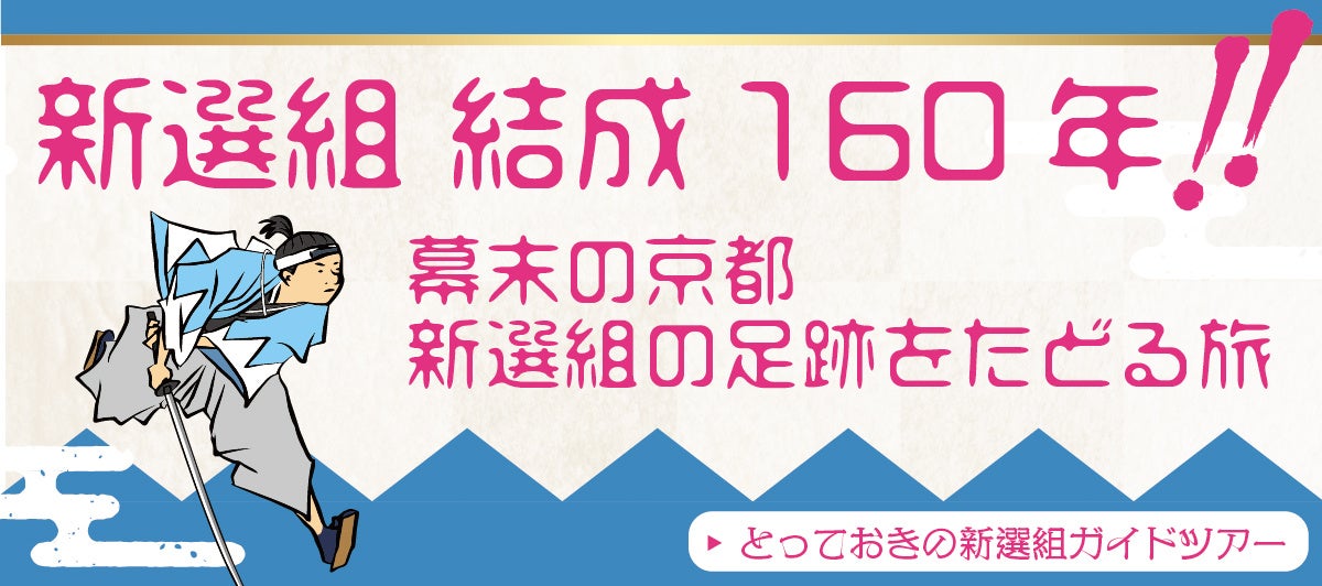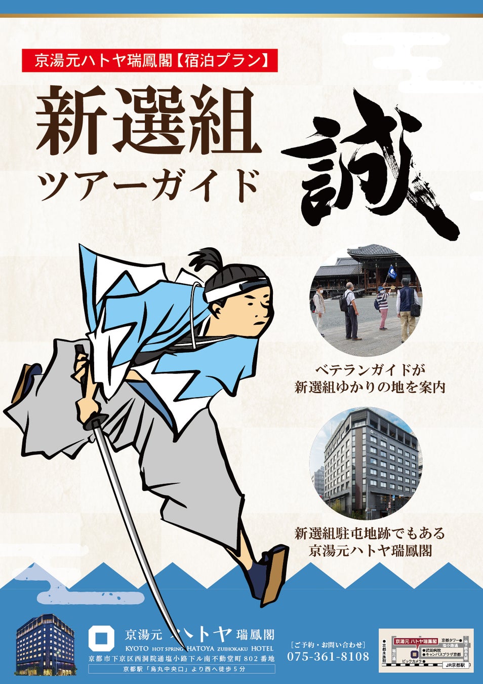 京都に数多く点在する、新選組発祥の地やゆかりの地。そのひとつが、京湯元ハトヤ瑞鳳閣(所在地:京都市下京区)の敷地内にある、新選組最後の屯所跡として建てられた石碑。ここを拠点に、新選組の絶頂期、そして「鳥羽・伏見の戦い」へ。歴史に思いを馳せながら、激動の日本を進んだ新選組の足跡をツアーガイドと一緒に巡る。ひと味違った京都の旅を計画している人にも、うってつけの宿泊プラン。