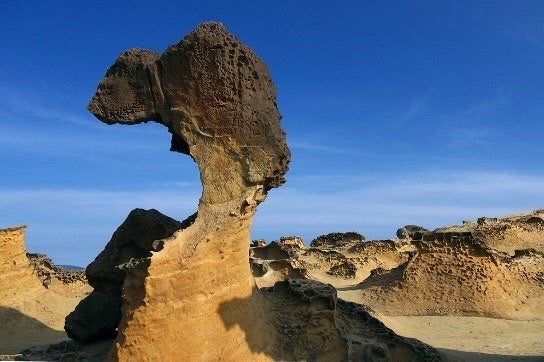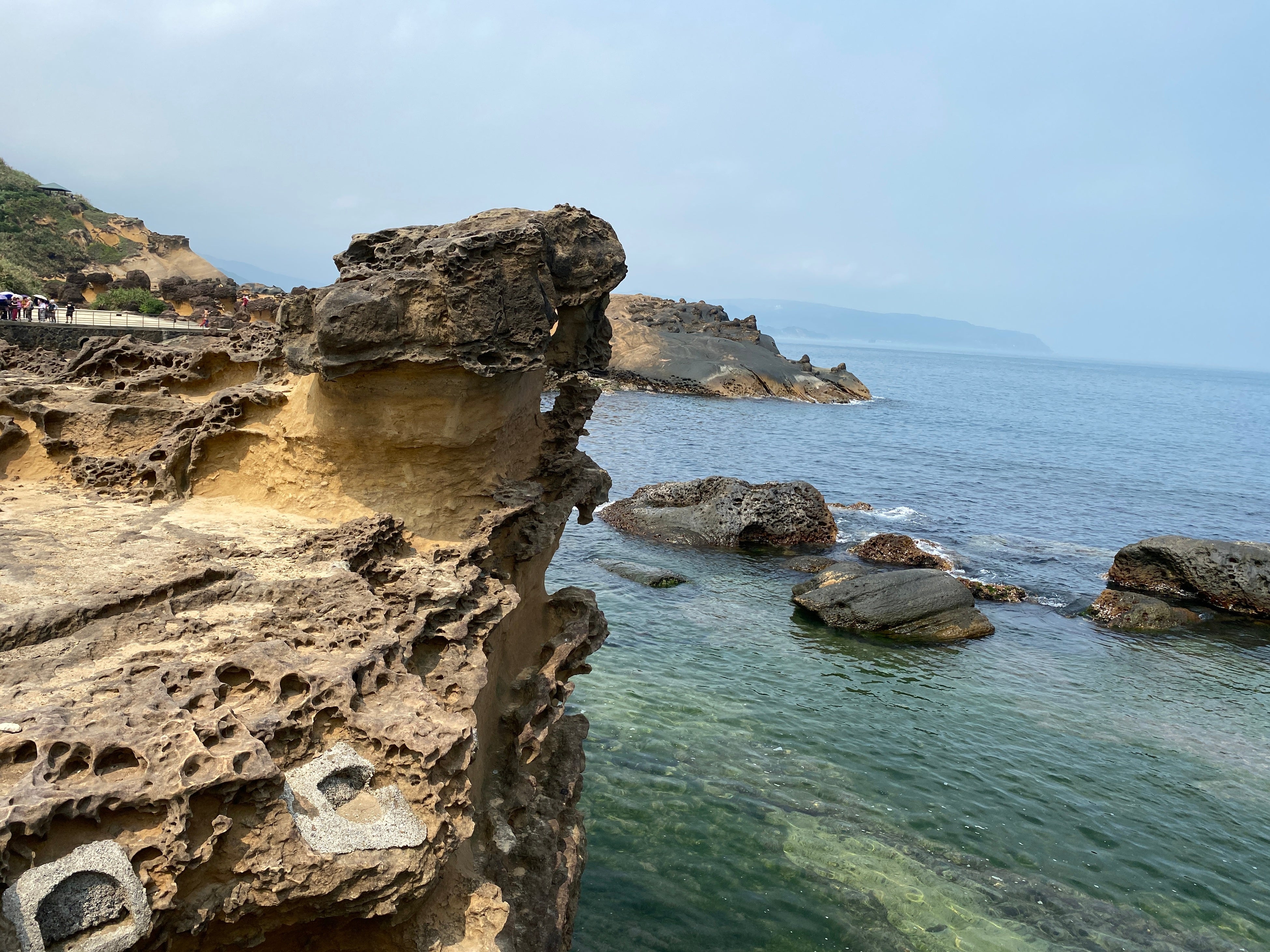 コースの最後には、風化や海食、地殻変動によってできたキノコ型岩、海食洞、豆腐型岩、ろうそく型岩、壺型洞などの自然の地質景観で有名な「野柳地質公園」があります、「女王の頭」と呼ばれる岩は、野柳を象徴する岩で、人気の観光スポットです。
