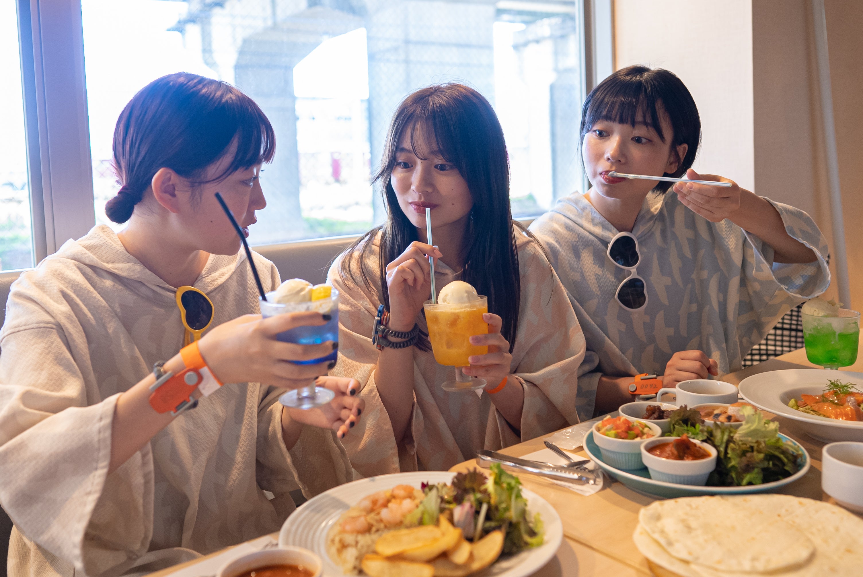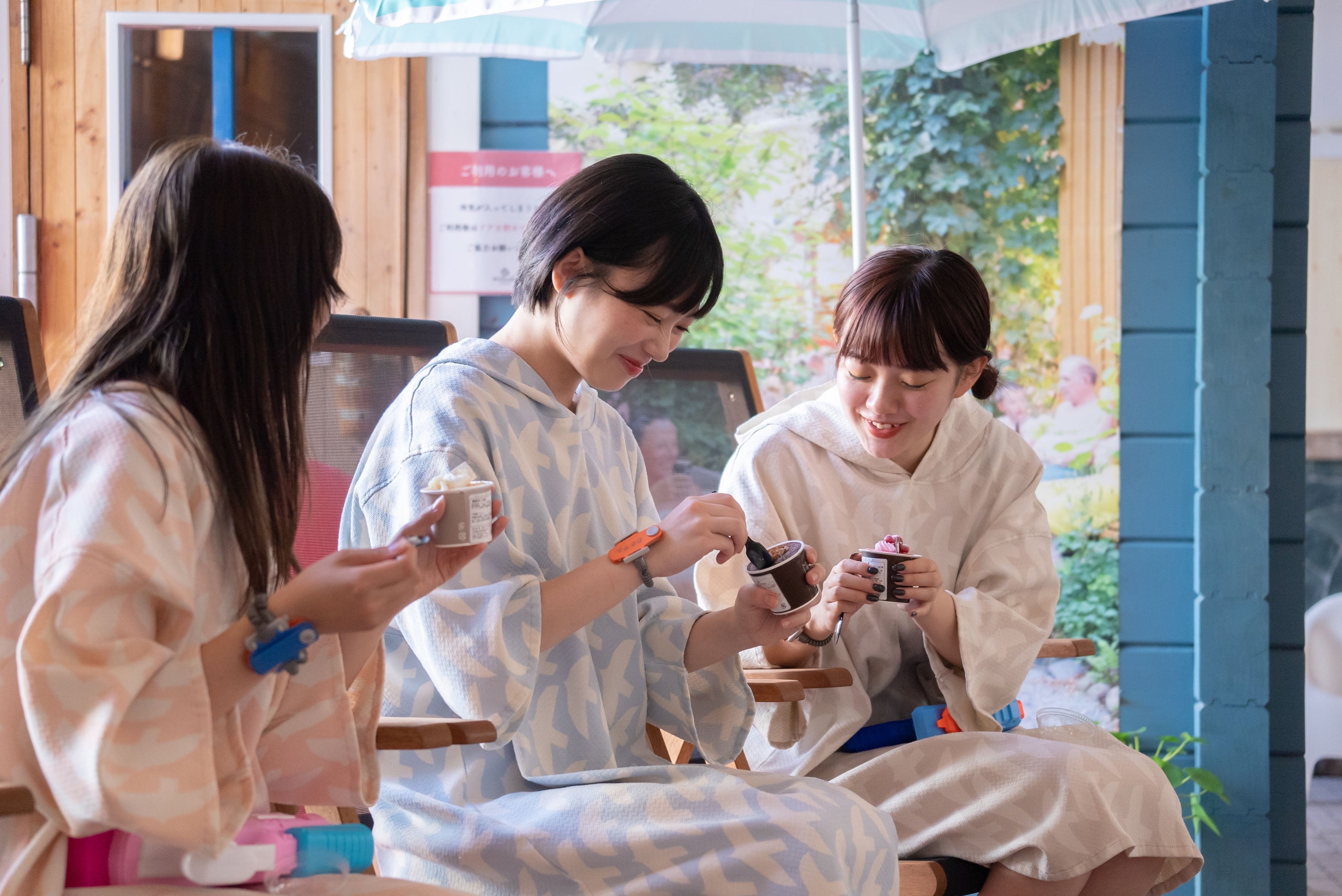 パジャマパーティーには欠かせない、夏を感じるシーズン限定パジャマを女性限定で無料貸し出し。女性脱衣所でパジャマを選び、この夏限定のカフェメニューをシェアして楽しみませんか?