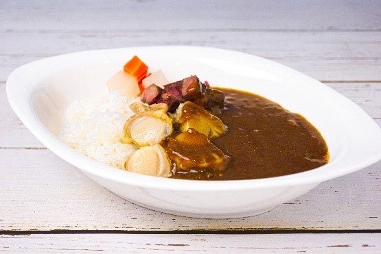 ホタテの旨味が凝縮されたスパイシーカレー。じっくり煮込んだやわらか牛すじとの相性が抜群。暑い夏を更にHOTに!