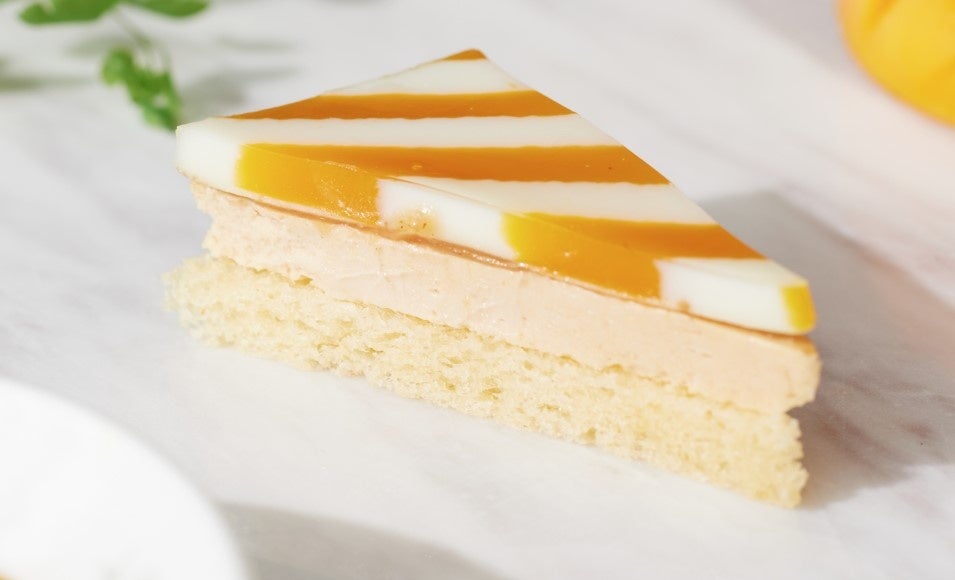 味も見た目もエキゾチックなスイーツ。ナポリ名物の焼き菓子ババにマンゴームースを合わせコクのある仕上がりにしました。デコレーションにはホワイトチョコレートのクリームにアプリコットソース、ピスタチオ、南国色のお花を散らして、トロピカルな甘味と酸味の絶妙なバランスが愉しめるスイーツです。