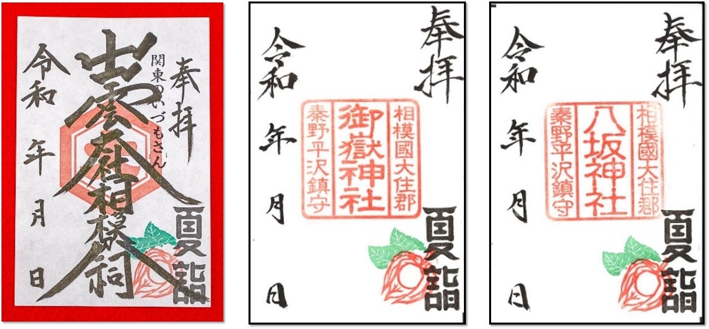 出雲大社相模分祠500円、御嶽神社300円、八坂神社300円、切絵御朱印1000円