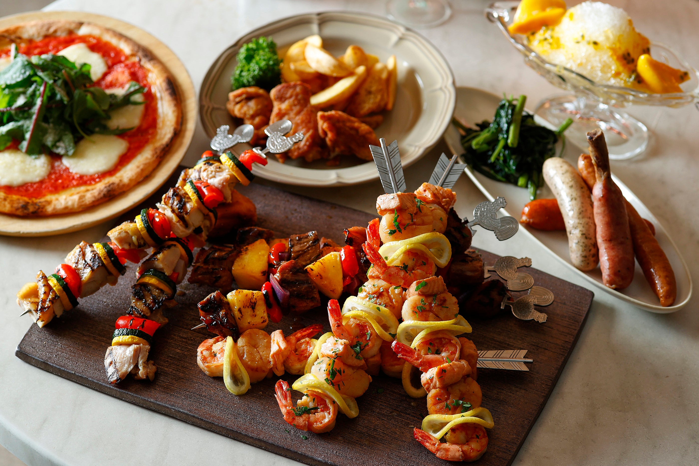 塩麹マリネグリルチキンと夏野菜の串焼き ¥1,540 / 4種のソーセージ盛合せ ¥1,760 / 3種のフルーツかき氷 ¥1,320 ほか