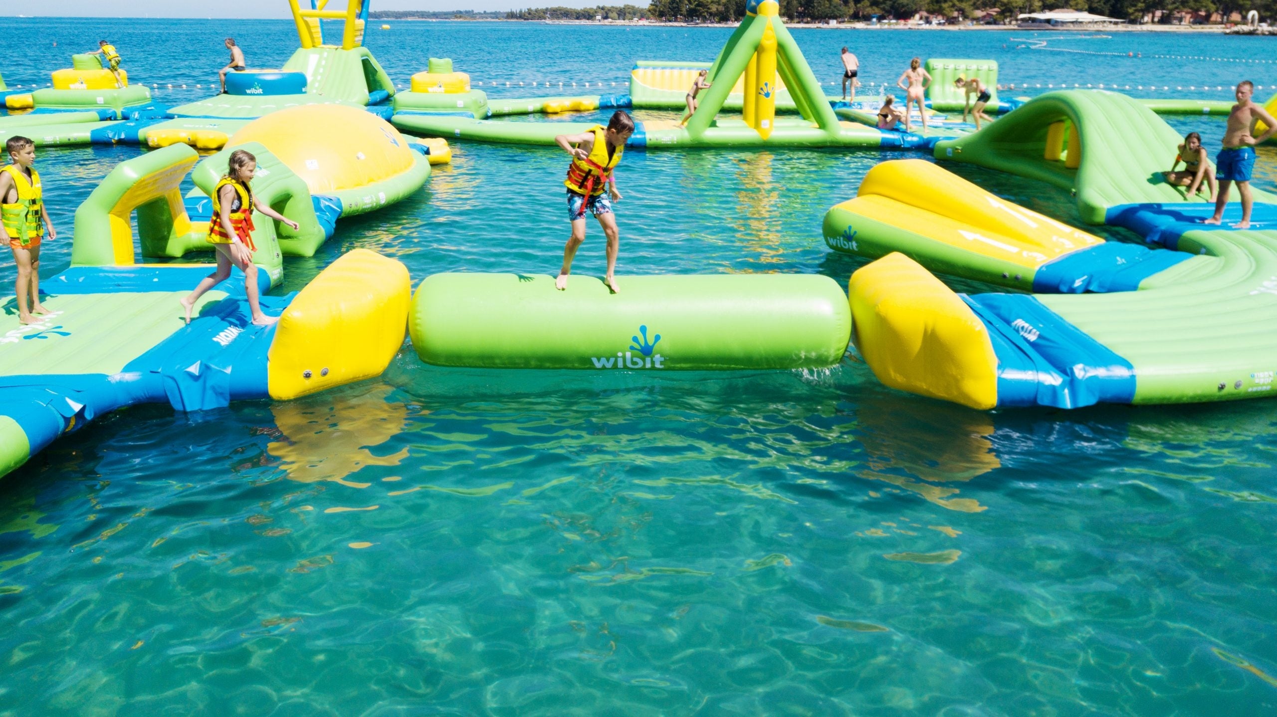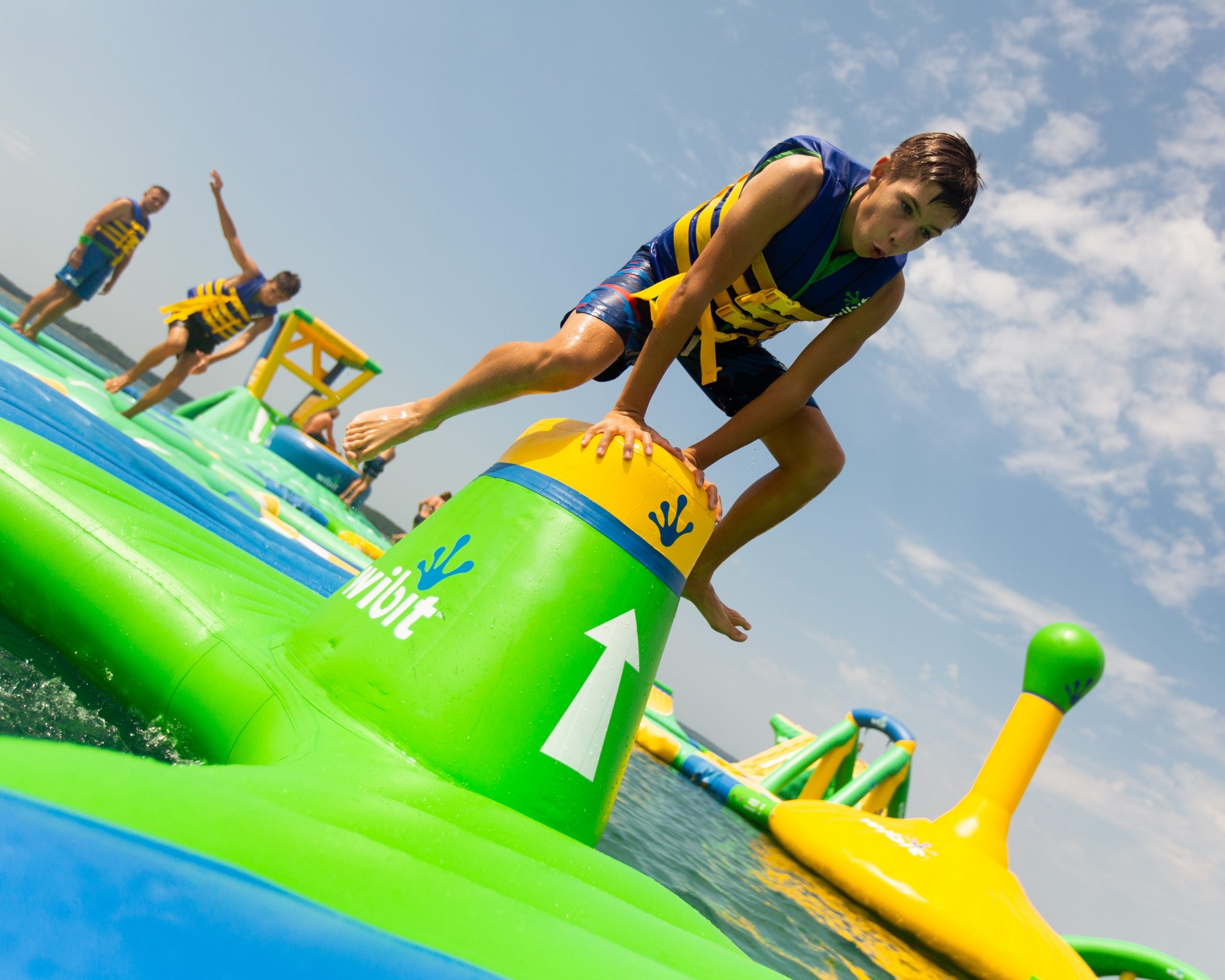 さらにさらに!!超楽しいNEWアトラクションが6種が増え、トランポリンやすべり台、ジャンプ台やブランコなど、爽快爆笑水上アスレチックアトラクションが33種類となります。