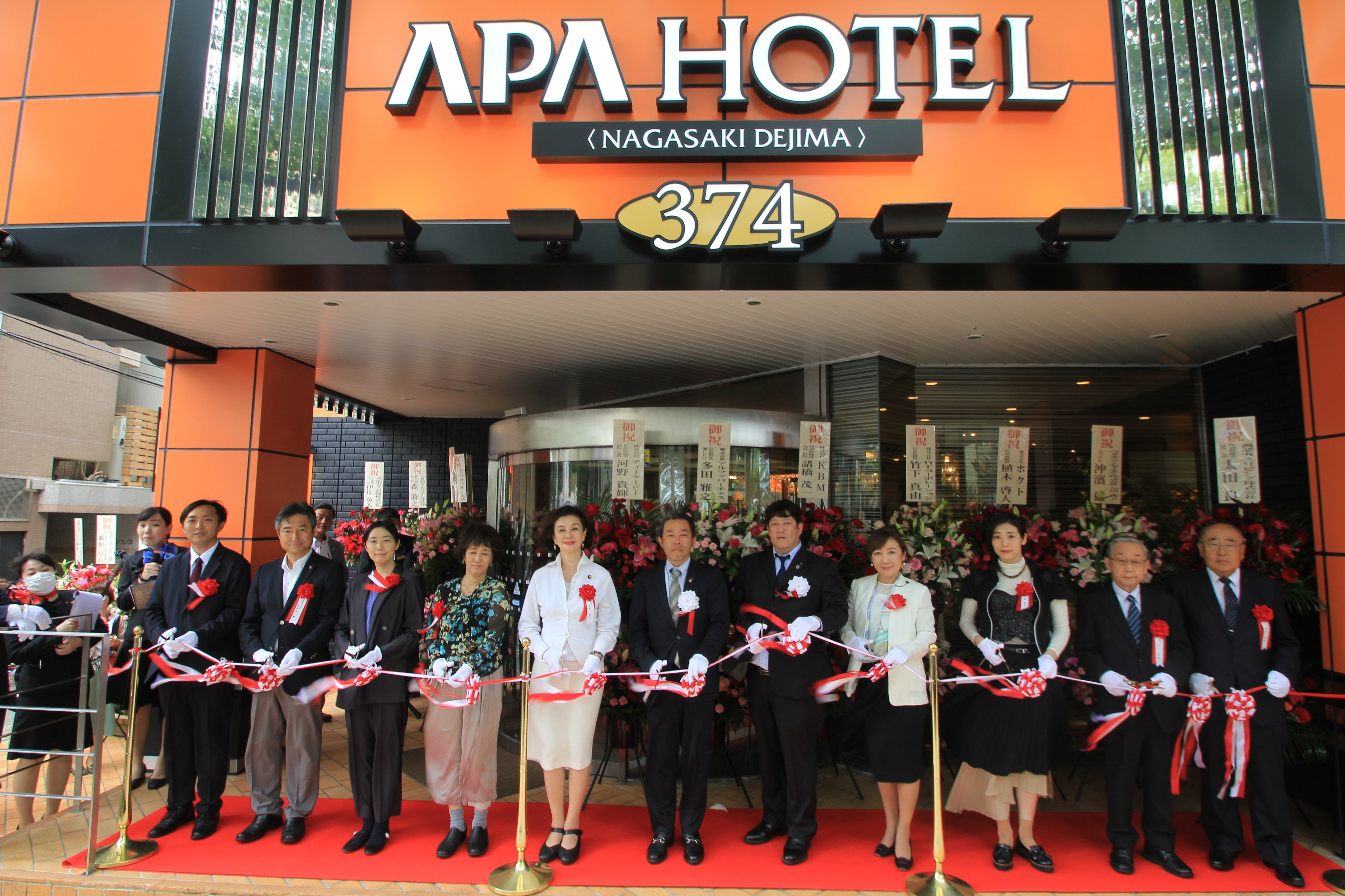 記者発表では、アパグループ社長 兼 最高経営責任者(CEO)元谷 一志は「当館は昨年12月にアパホテルとしてリブランドオープンし、以降大幅なリニューアルと36室の増室を行い、本日グランドオープンを迎えたことを大変嬉しく思う。長崎市は多くの文化遺産が点在し、ランタンフェスティバルや長崎くんちなどの伝統行事も毎年開催されることから、観光都市として世界的に注目を集めているエリアであり、今後ますます訪日外国人が増えると見込んでいる。増加する訪日対策として、アパホテルでは万国共通で認識できるピクトグラムの導入を強化しており、当ホテルでも新たに製作したピクトグラムを客室や共用部のサインに採用している。また、客室は隣り合うシングルを繋げて利用できるS-Sコネクトツインルームを多く採用し、平日はシングル、週末はツインと多様化するニーズに合わせて利用できる客室構成とした。長崎は西九州新幹線の開通後、陸路でのアクセスも至便となった。長崎はまだまだ宿泊需要が高まると予想しており、今後も良い案件があれば積極的な出店を検討していきたい。」と述べた。