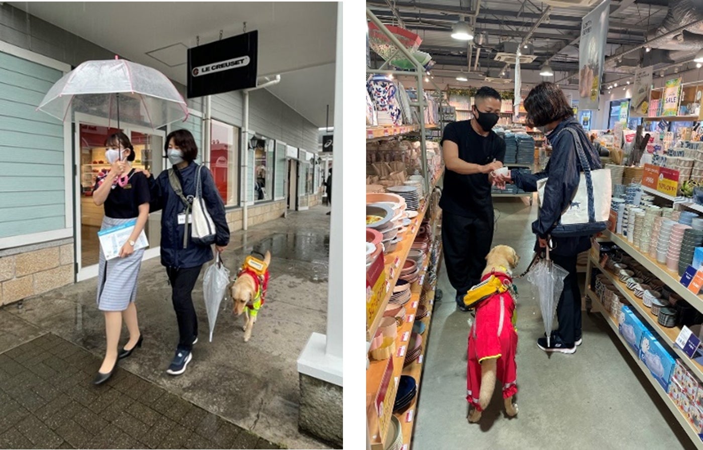「身体障害者補助犬法」では、盲導犬などの補助犬が公共施設や交通機関、不特定多数の人が利用する商業施設や飲食店で補助犬を受け入れることが義務付けられていますが、成立から20年が経過するも、未だ同伴を拒否されるケースが散見されています。佐野プレミアム・アウトレットでは、盲導犬ユーザーのお客様のご来店をきっかけに、補助犬の役割や受け入れ方法を学ぼうと、東日本盲導犬協会へ相談を持ち掛け、2022年5月に初めて本研修をスタートしました。