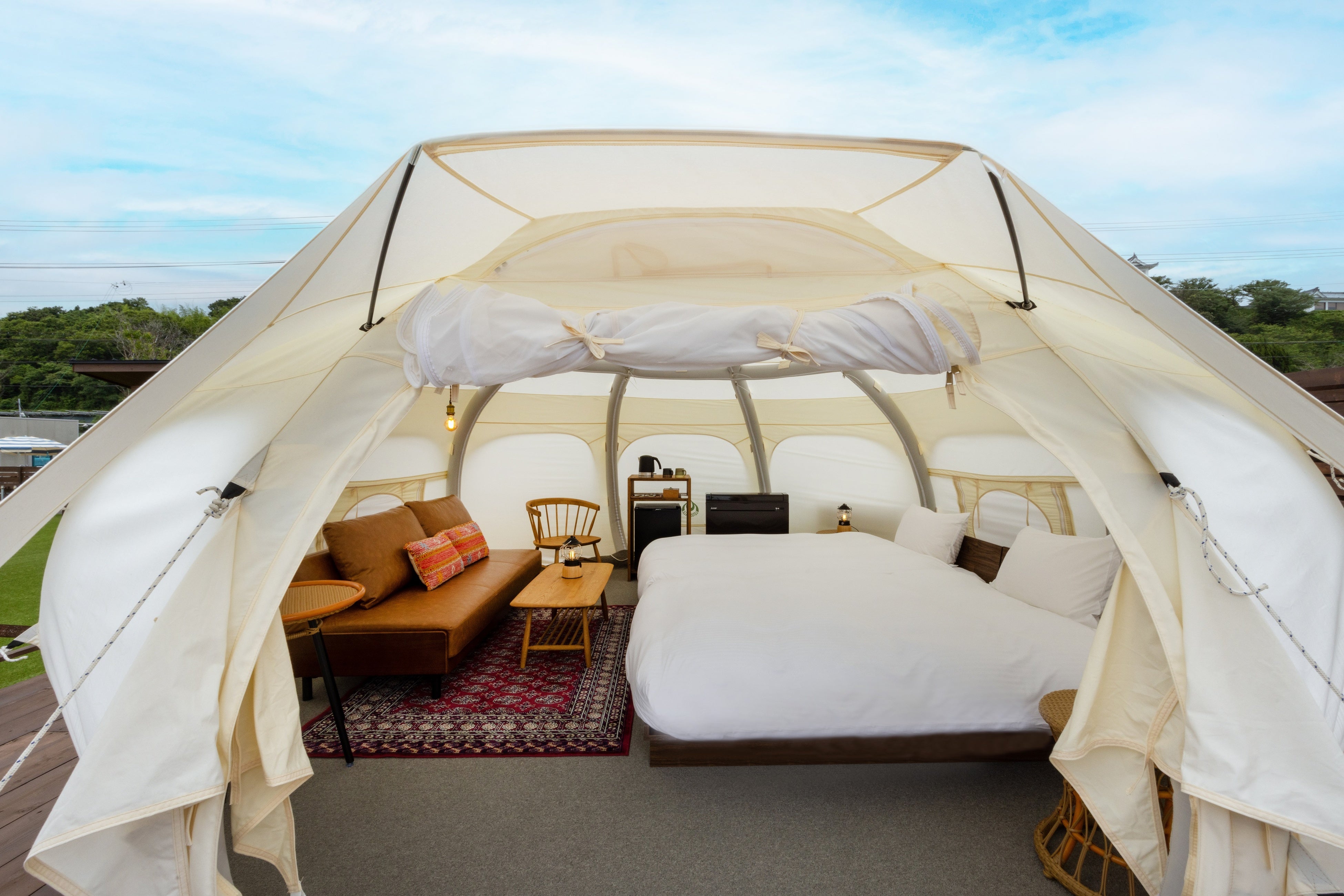 広い空とオーシャンビュー!冷暖房完備で快適なドーム型玉ねぎテント