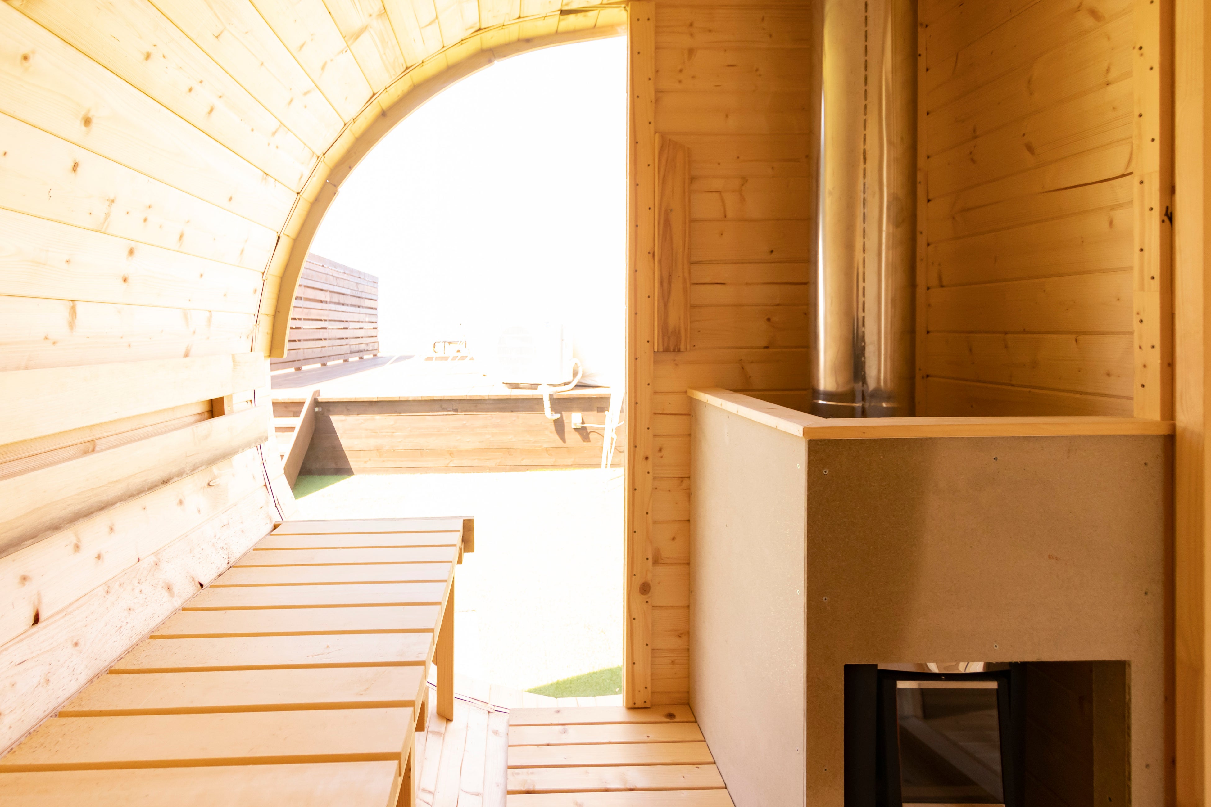 セルフロウリュウも可能な薪式のサウナもご用意。汗を流したあとはテラスで月夜を見ながら、ととのいの時間をお過ごしいただけます。