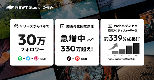 私たちのサービス、海外旅行予約アプリ『NEWT(ニュート)』も、リリースして1年以上が経過し、おかげさまで順調に成長しています。プロダクトやデジタルマーケティング、そして旅行のエキスパートのノウハウを活かして、たくさんのお客さまにNEWTで海外旅行を楽しんでいただけるようになりました。また、各SNSの総フォロワーが30万人を超え、再生回数が劇的に伸びている長尺からショートまで多様な動画、急成長中の自社Webメディアの記事などを通して、さまざまな情報も発信しています。