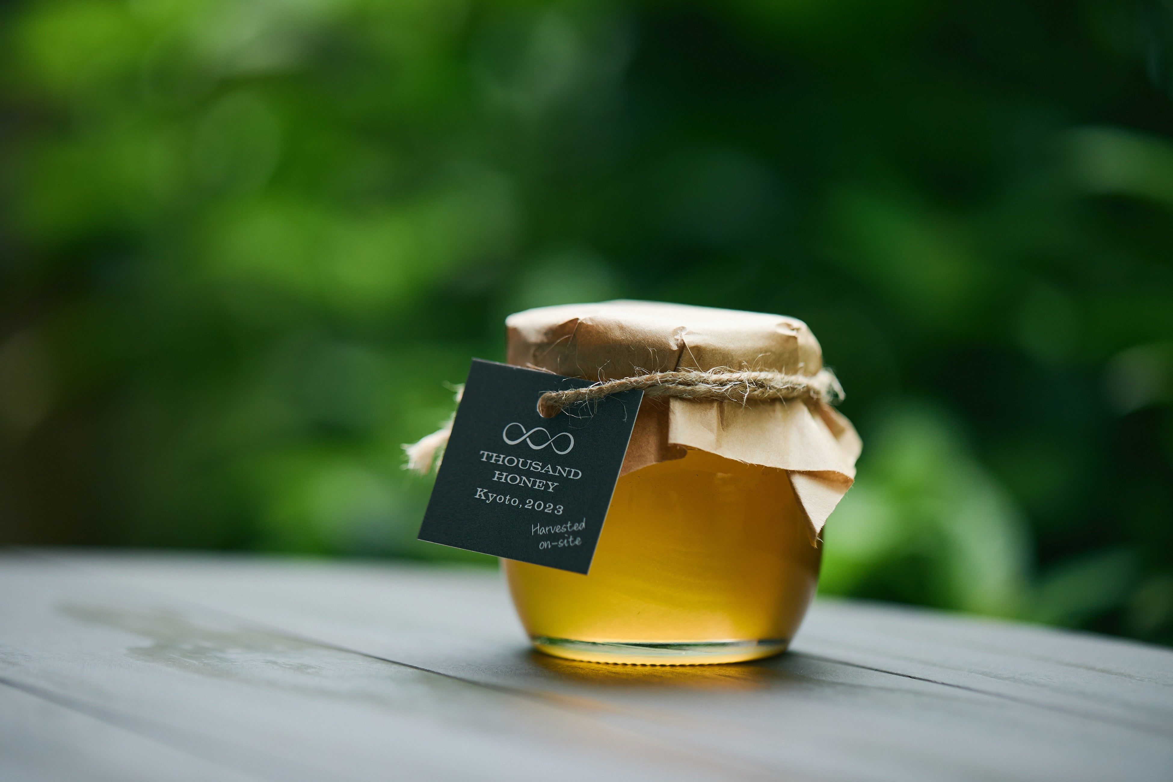 THE THOUSAND KYOTOの屋上で採れた、京都産・非加熱・無添加の純粋はちみつです。自然のままの香りや味わいをお楽しみいただけます。ホテルスタッフが愛情を込めて飼育したミツバチの恵みを、ぜひご賞味ください。