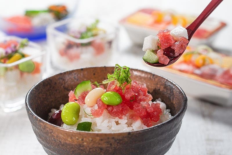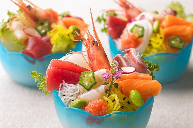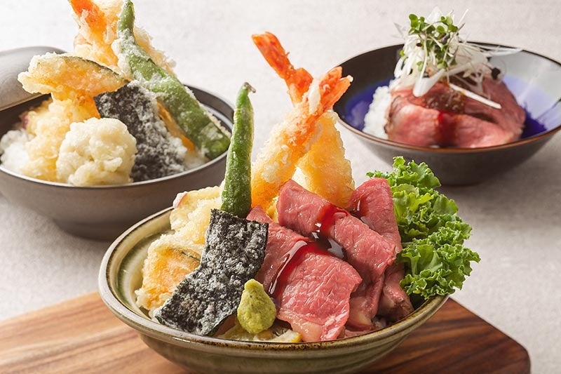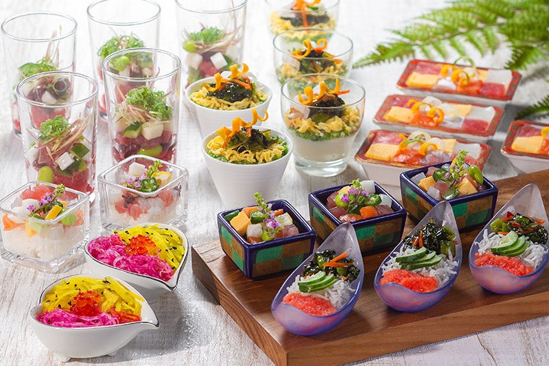 今回のビュッフェでは、お客さまがお好きな盛り付けで食べられるのも特徴の一つです。白米をどんぶりに盛り付け、ローストビーフや天ぷらなどをお好きなだけのせたオリジナル丼にアレンジしたり、お刺身などの海鮮を使った丼など、好みに合わせてお召し上がりください。
