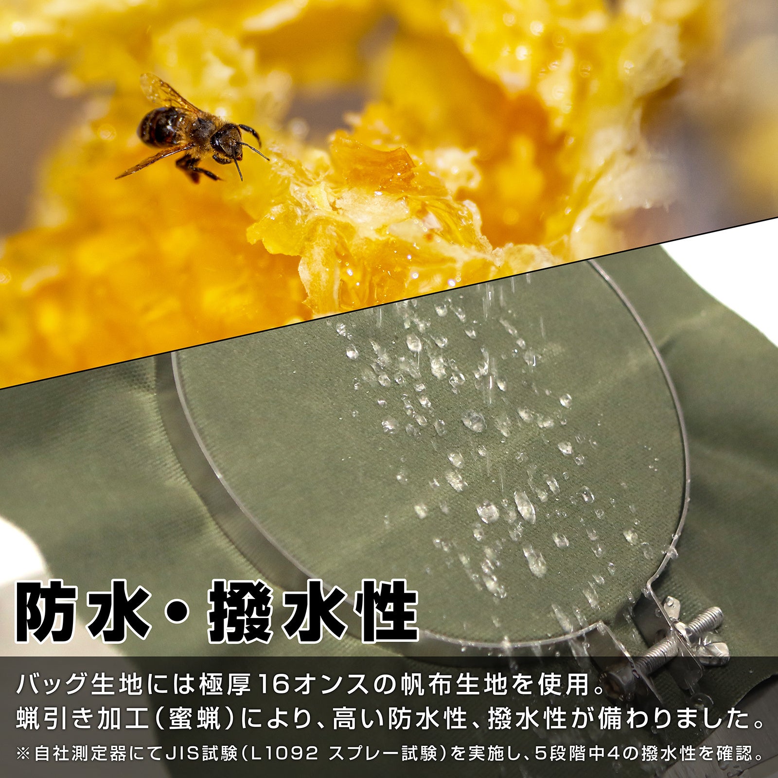 コットン(蝋引き加工:蜜蝋)、ポリエステル |